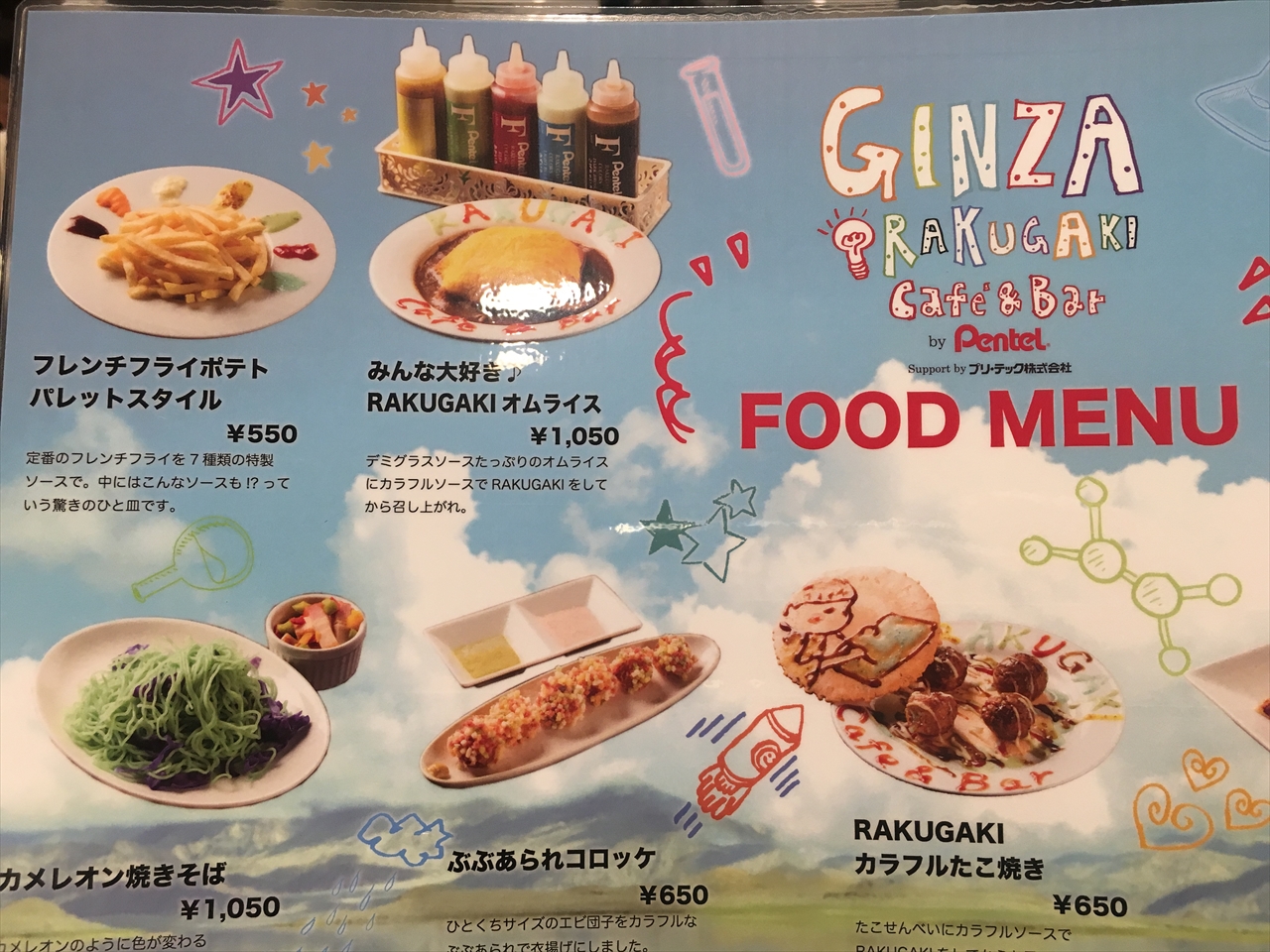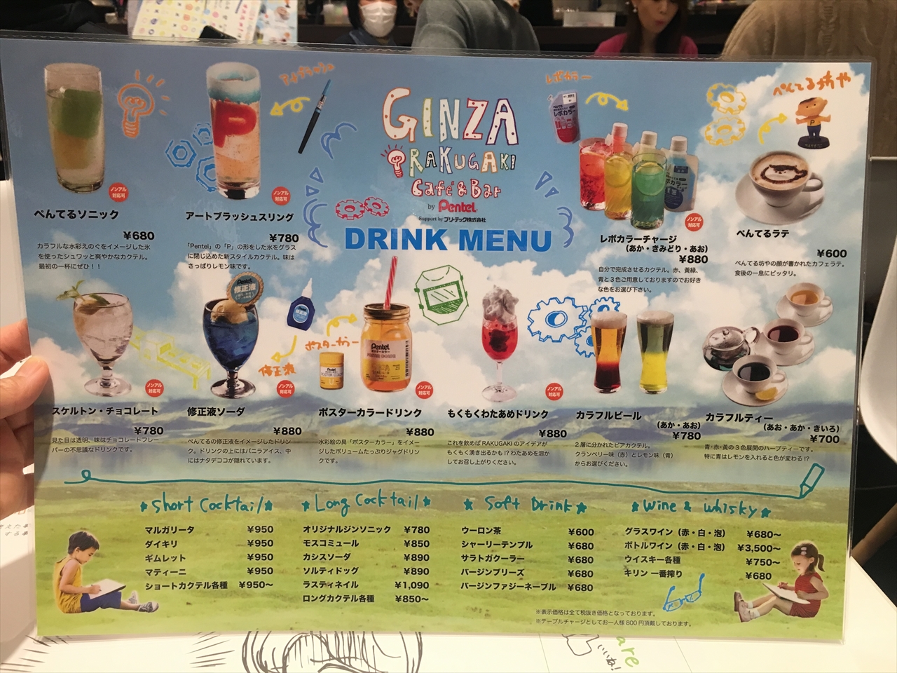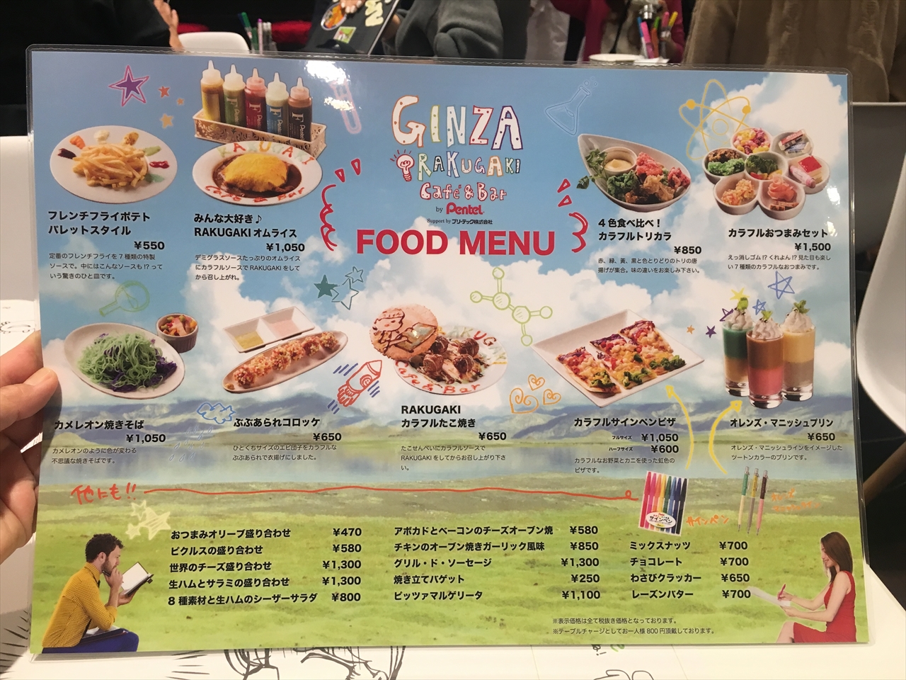 銀座らくがきカフェ&バーは、落書きを楽しむだけの場所ではない。飲食だってもちろんできる。どんなメニューが用意されているかというと・・・
