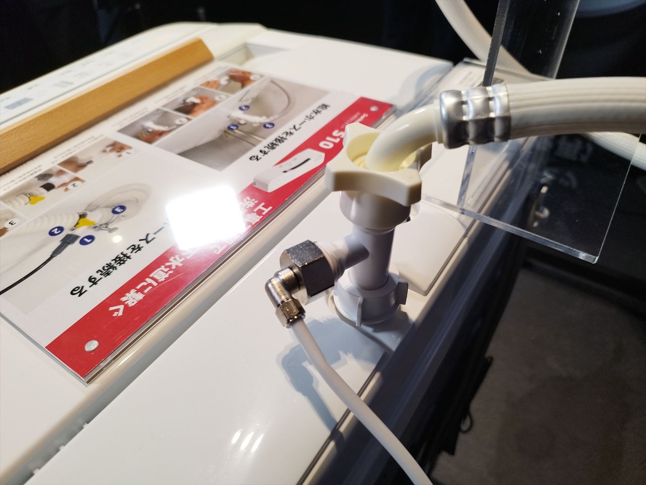 水道の蛇口やホースには国際的な規格があり共通なので、ほとんどの洗濯機に問題なく連結できる。スペースの関係で洗濯機が無理な場合には、食洗器でもいいとのこと。
