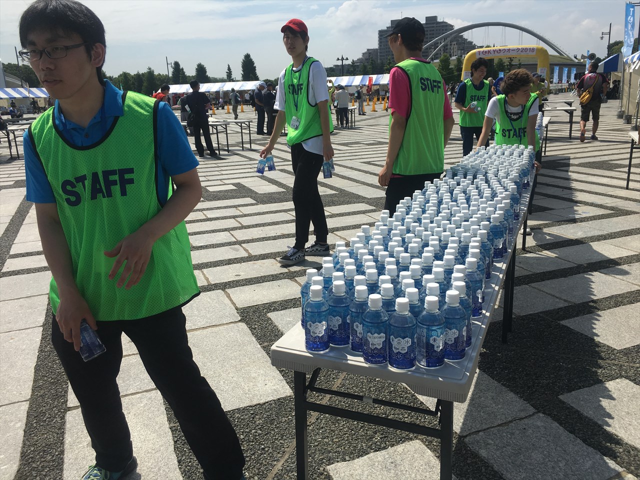 ここで東京水と大塚製薬の経口補水液「OS-1」が配られる。