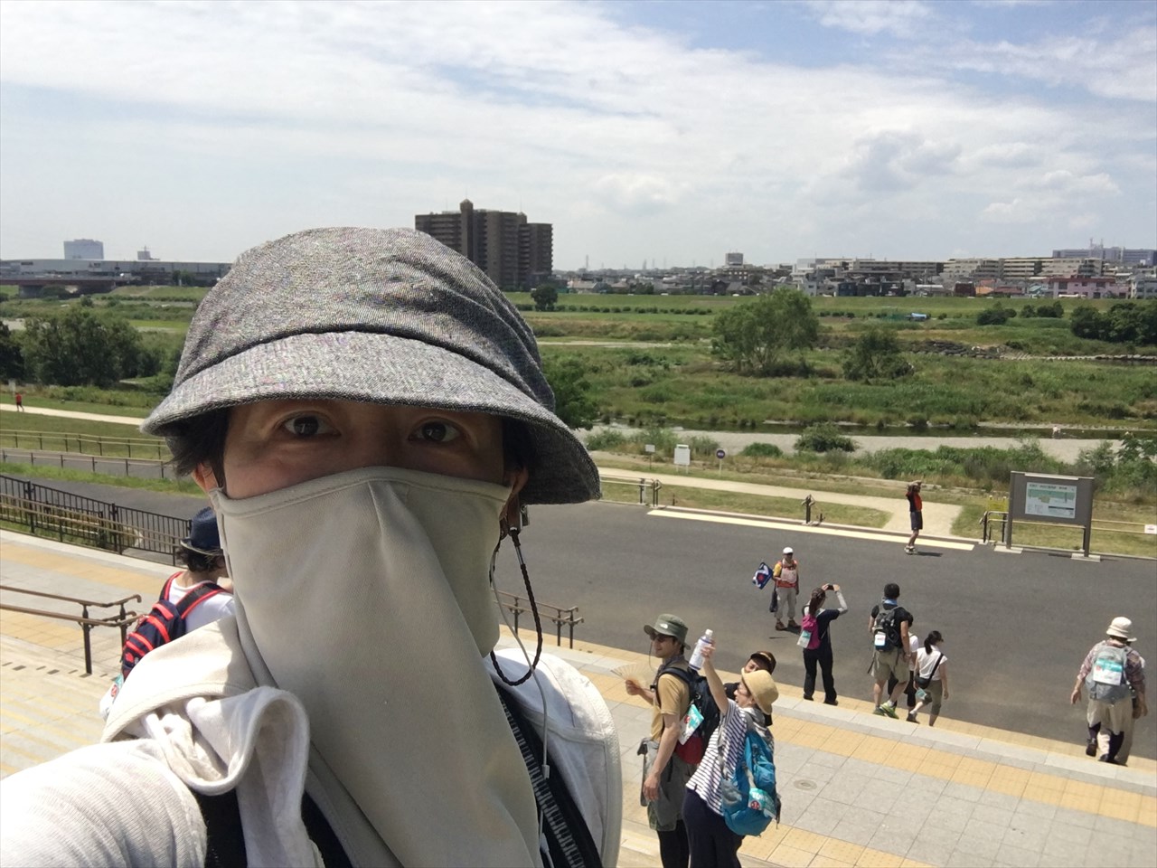 見た目ちょい怪しいんだけど、この日差しではいくら日焼け止めを塗りたくっても真っ赤になりそうだったので。