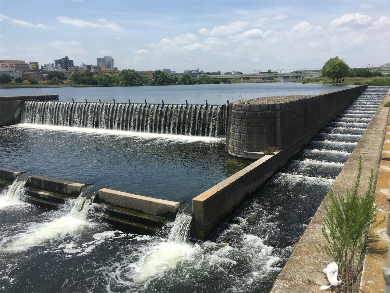 河口から22.4キロ地点に作られた「二ヶ領宿河原堰」。