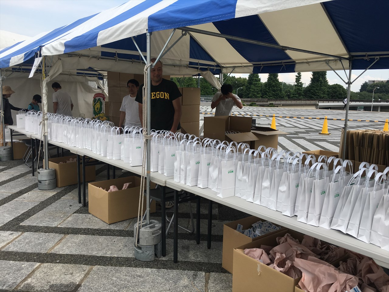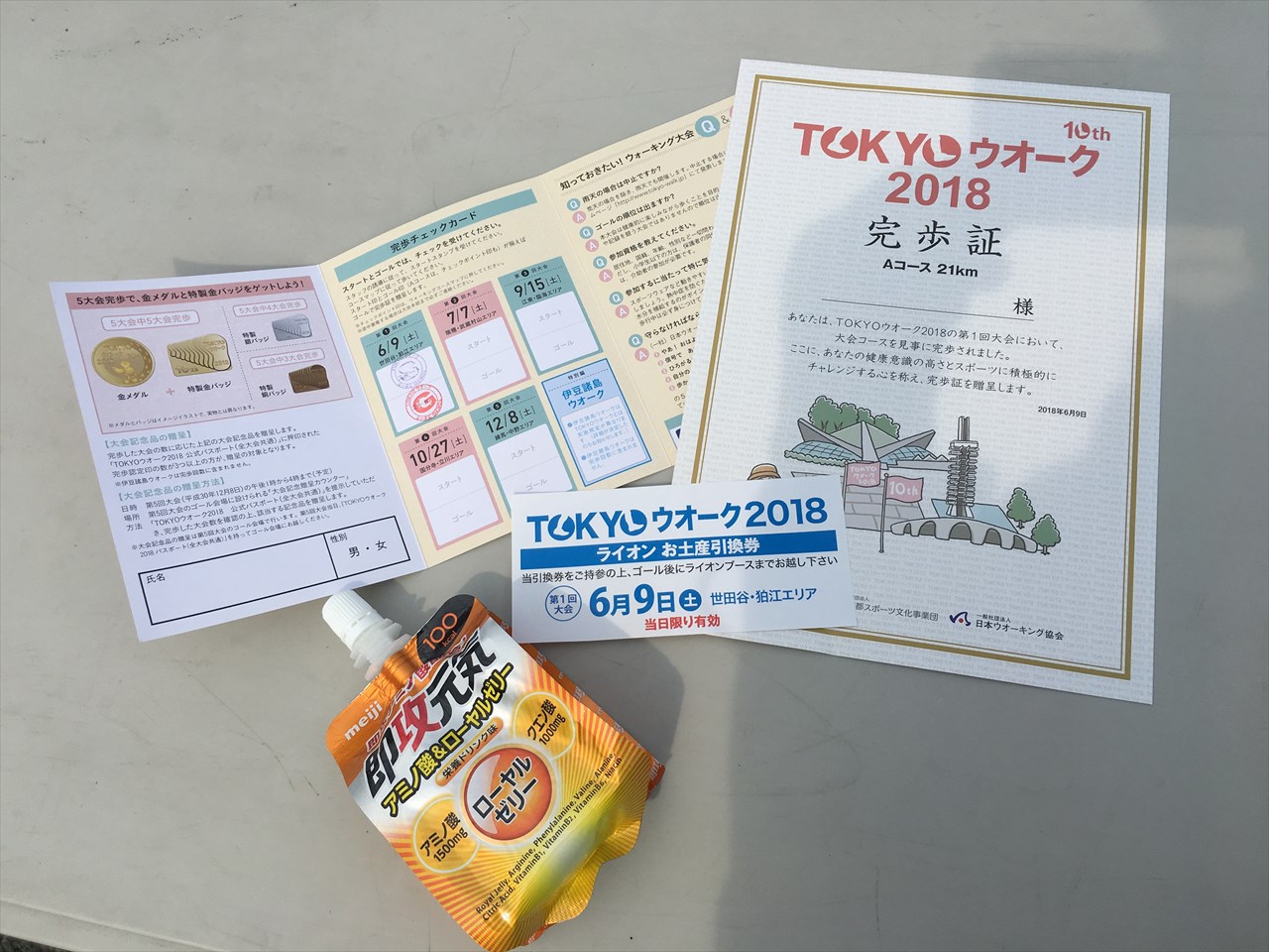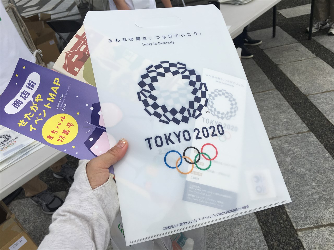 さらにゴール地点の周囲に作られたテントをまわっていたら、東京オリンピックのクリアファイルとマグネットバッチももらった。