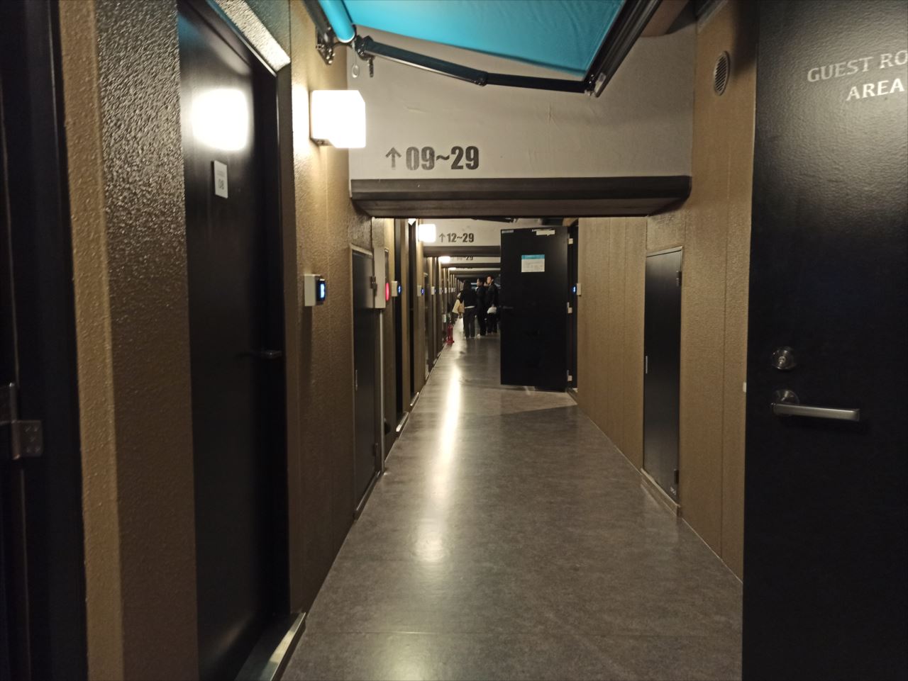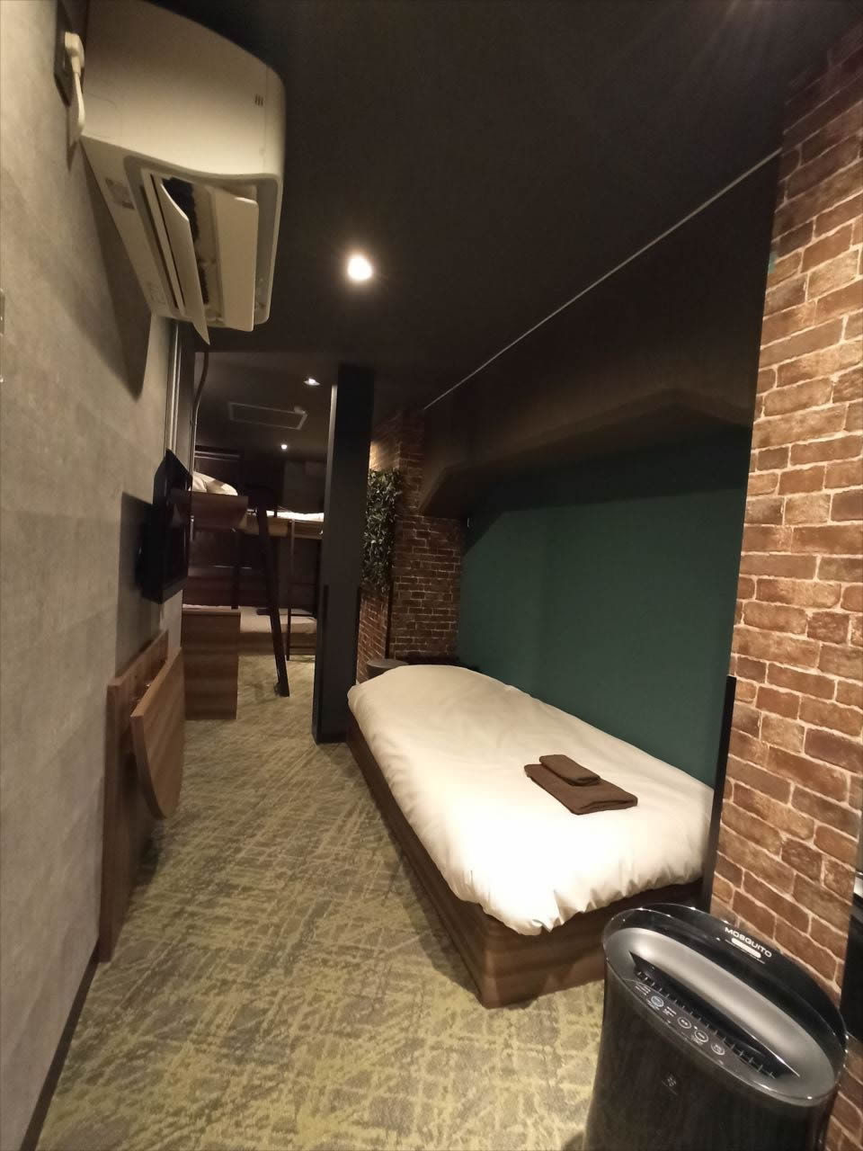 線路下ということで、とにかく長い。細長い。内装は暗めの配色でデコラティブさもなく落ち着いた雰囲気。空港内のキャビンホテルとかこんな感じかなと思った。