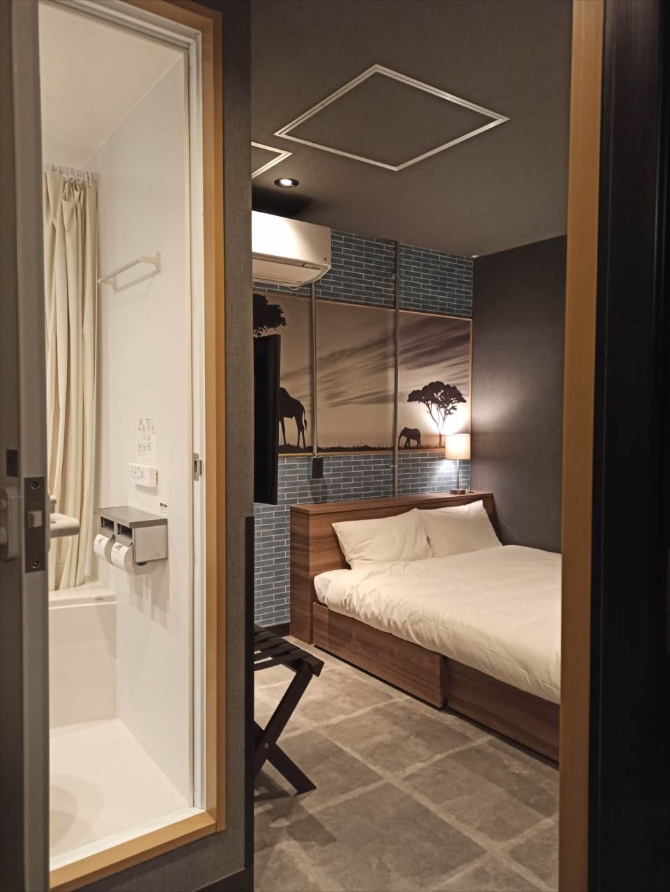 扉の間隔と場所柄、てっきりシングルルームがずらり並んでいるのかと勝手に想像していたがまったく違った。
