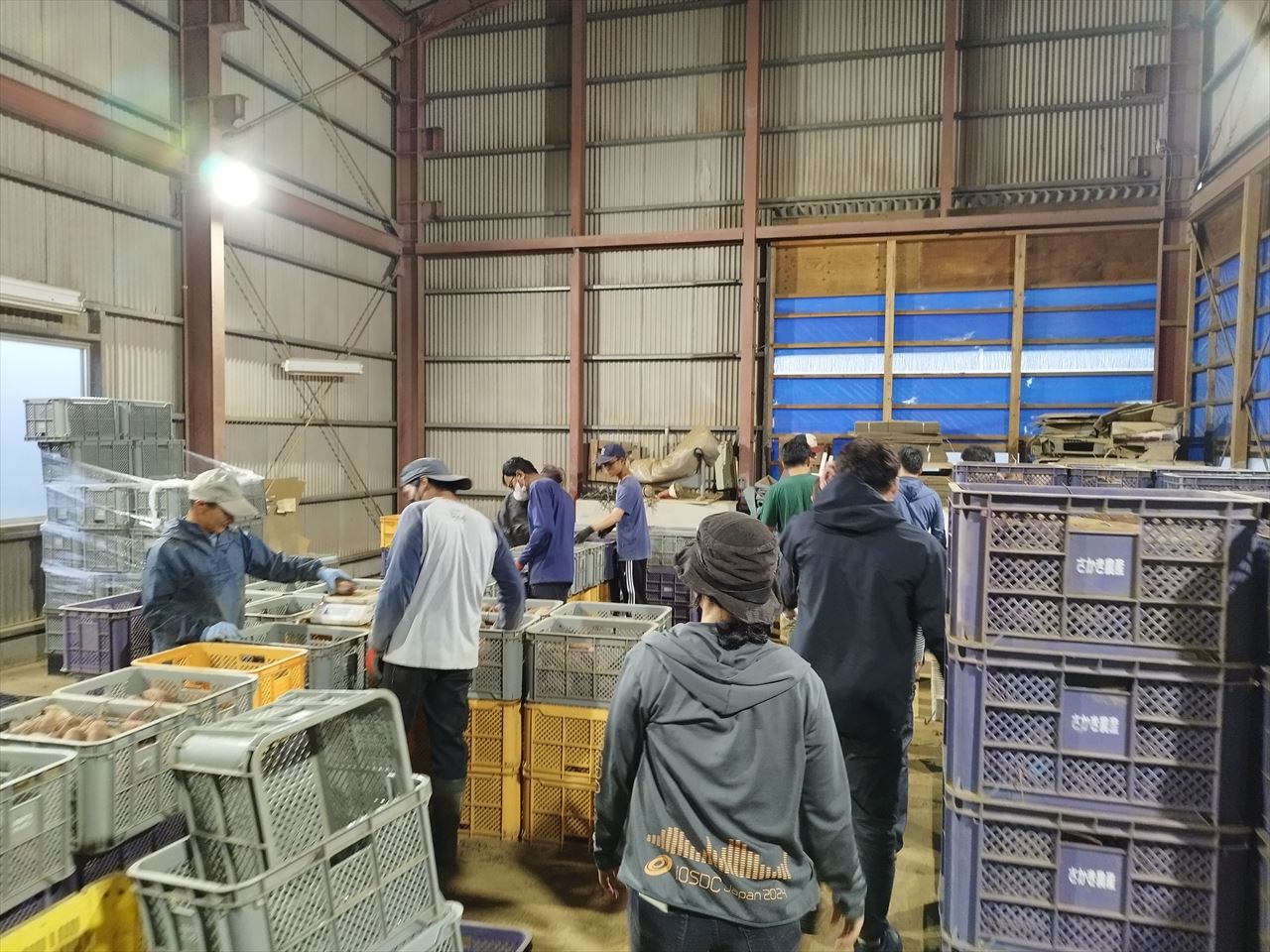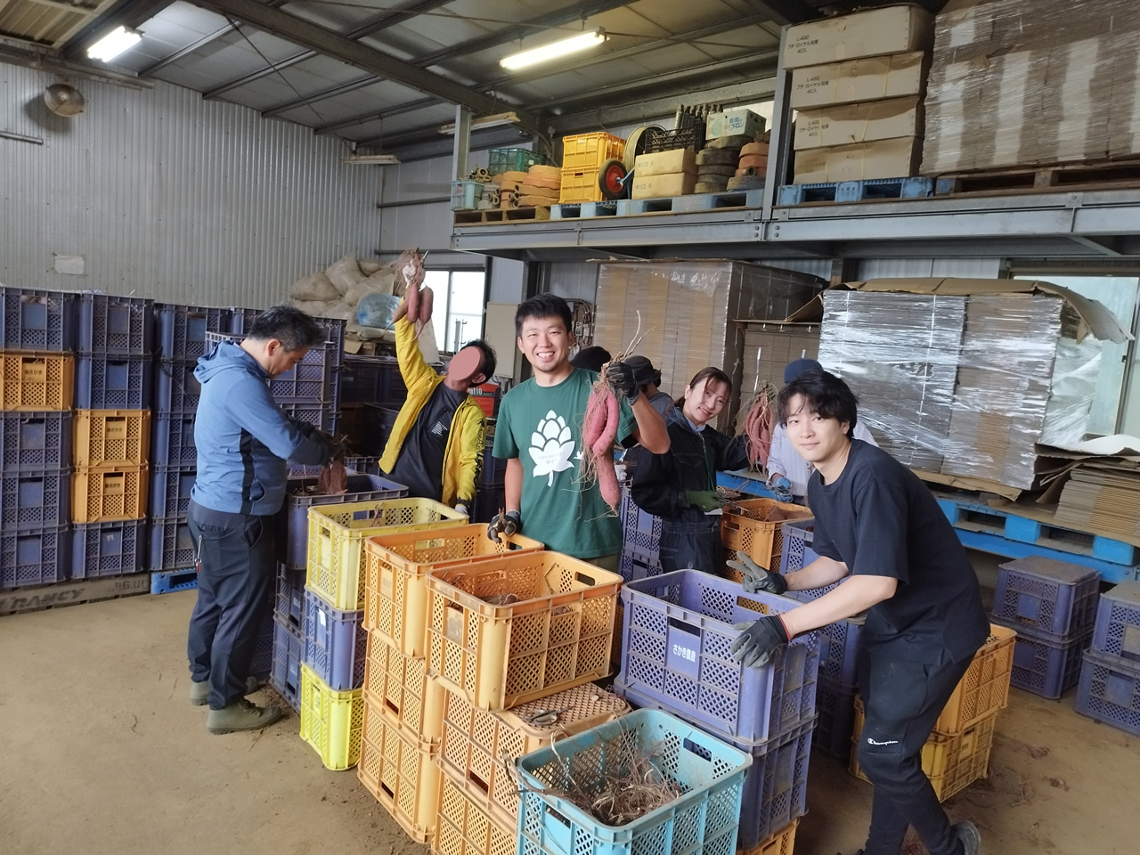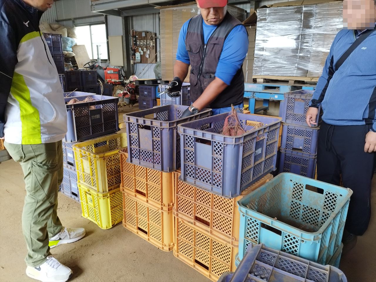 ちなみに北総エリアはこの時、さつまいも収穫・出荷ピークの直前。敷地内には収穫用のケースが山と積み上げられていた。
