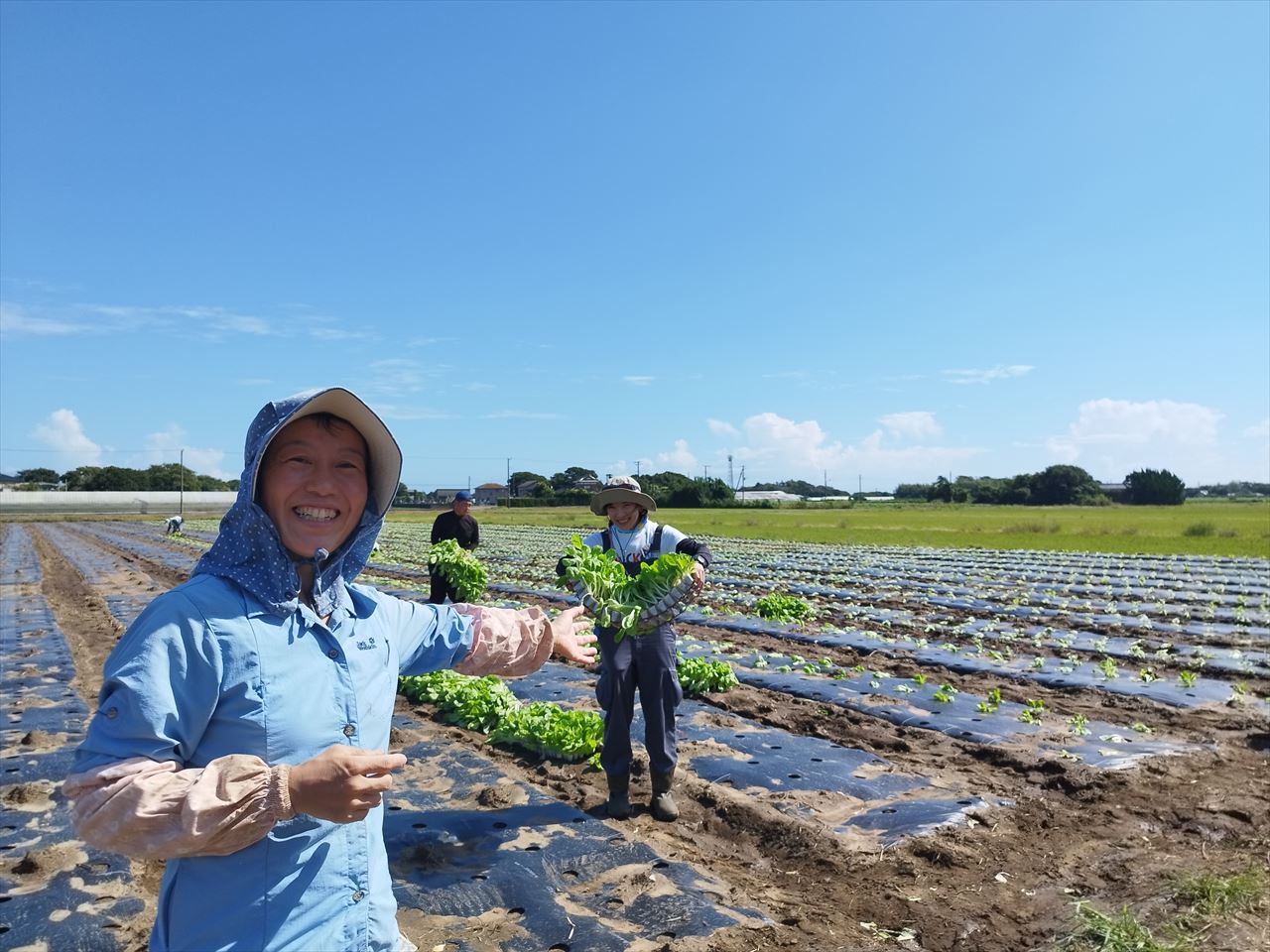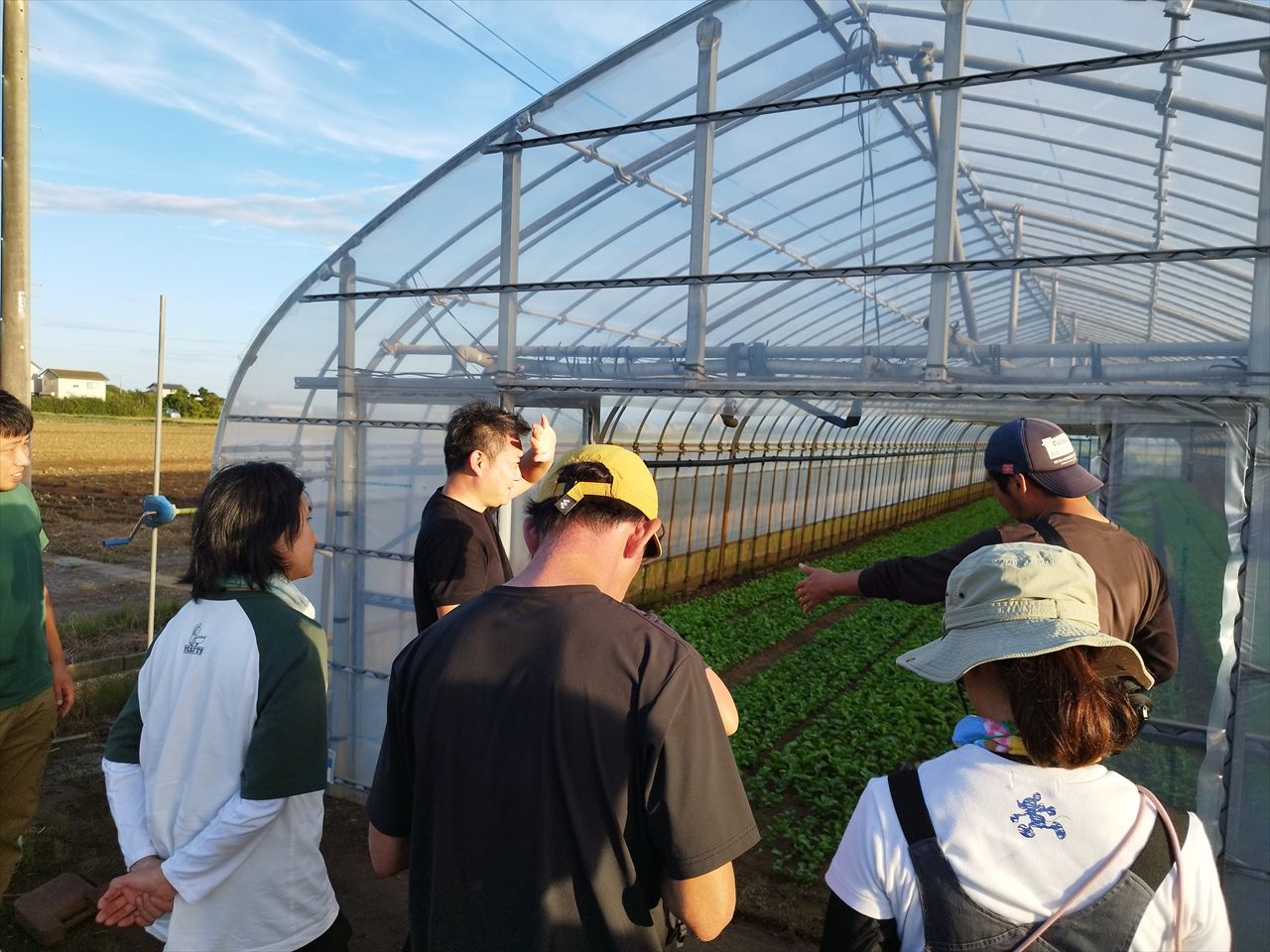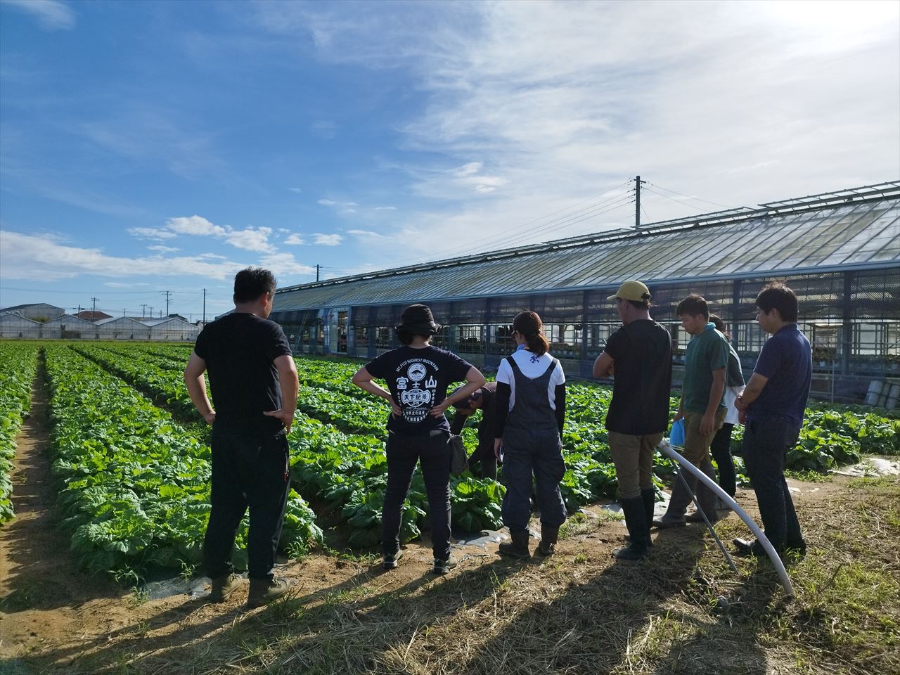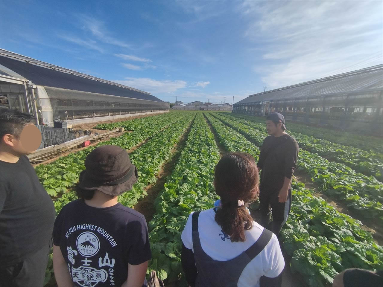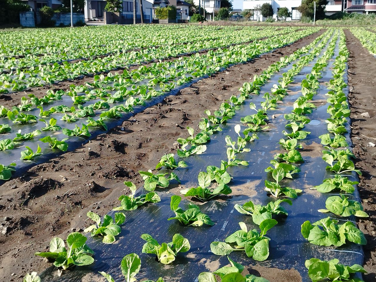 2日目は2チームにわかれ、我々はミニ白菜・ベビー白菜を育てる旭市の農家の方の畑へ。