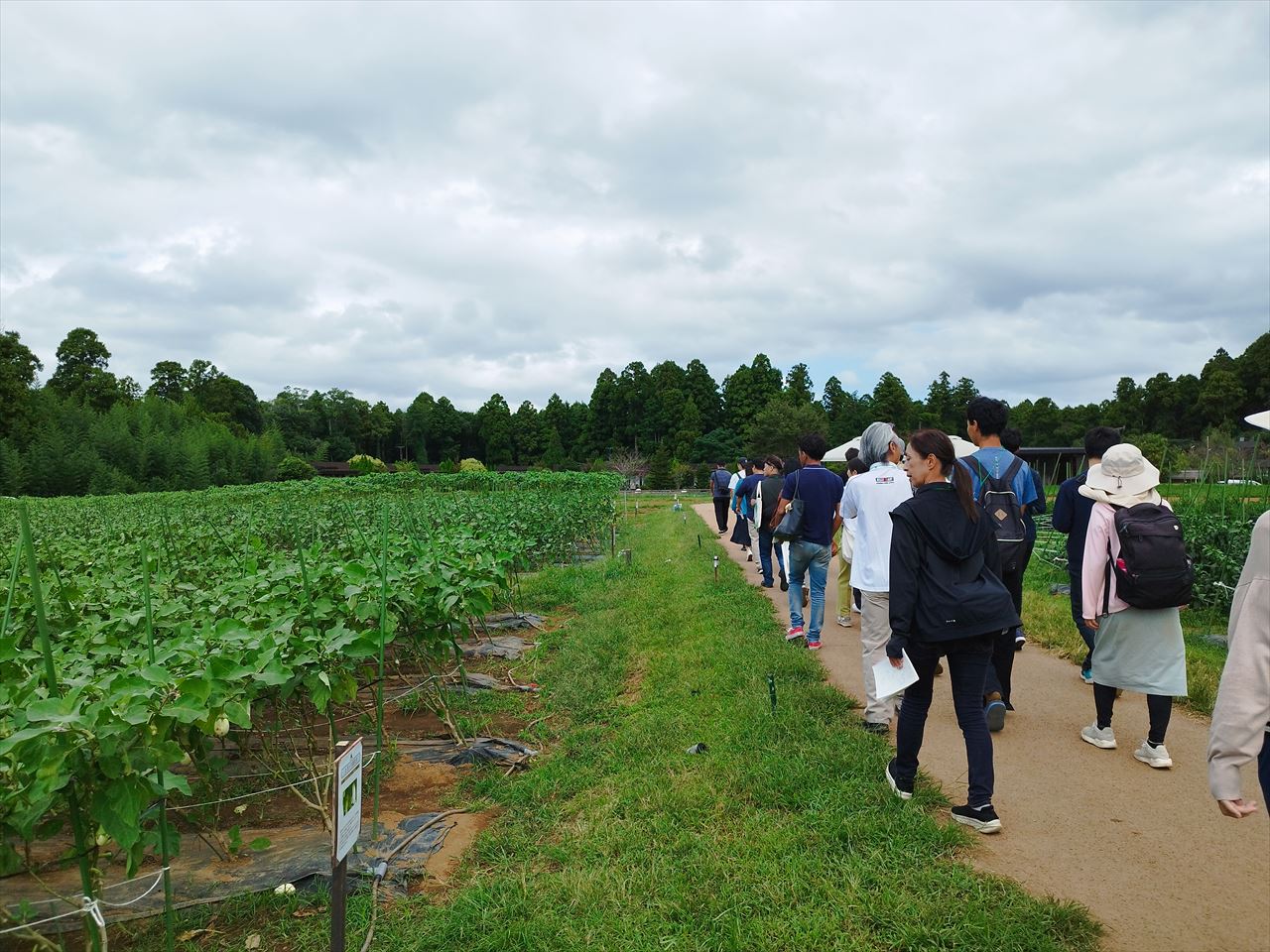 家庭菜園ではせいぜい1種類の苗を10本も植えれば多いほうだったりするので、延々と続く畝にひたすらポット苗を差し込んでいく作業は初めてだ。自分達以外に、タイ人の研修生グループも定植作業を行っていたが、スピードが全然違った。