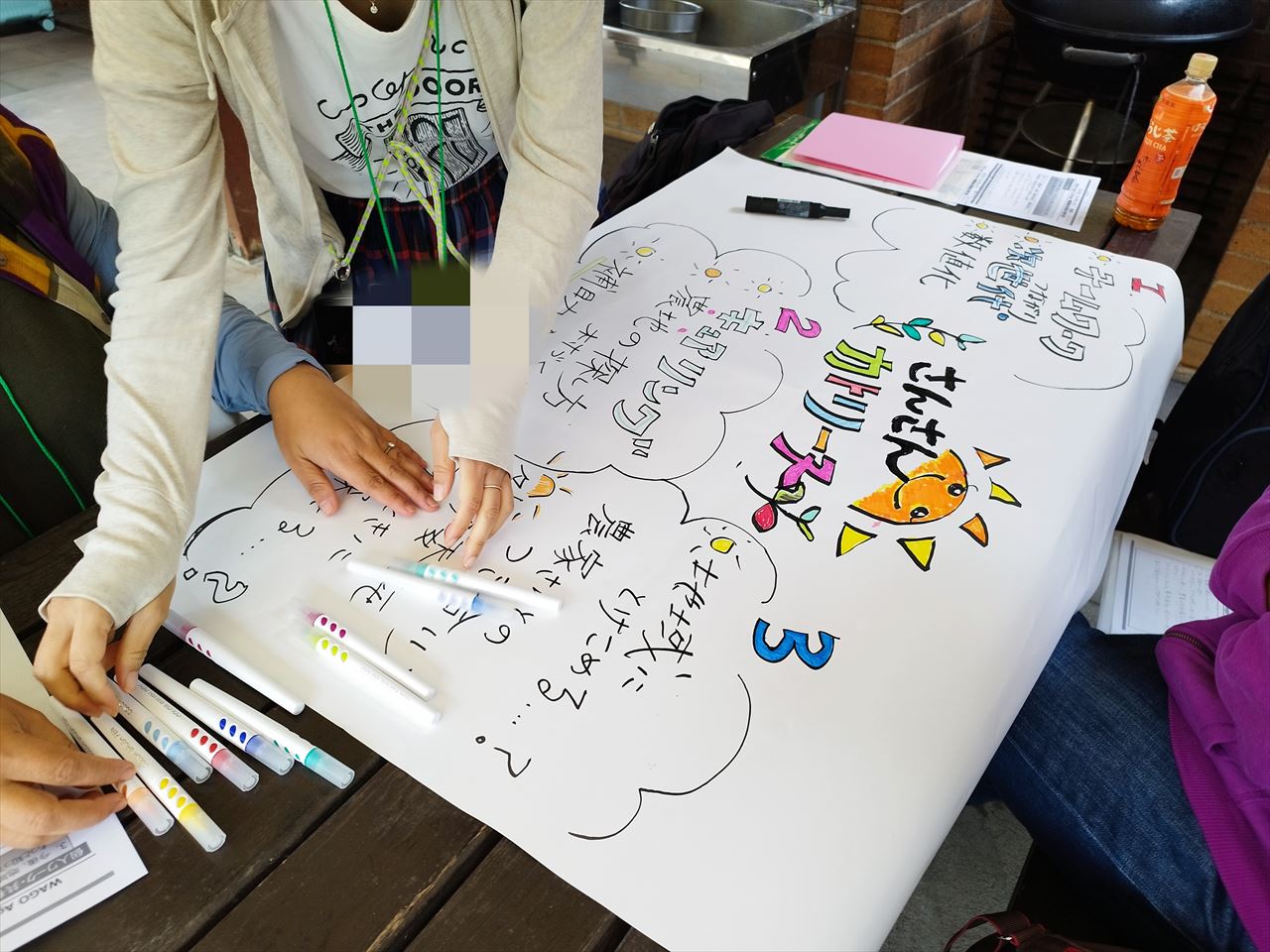 3日間同じコテージで過ごした4人がチームを作り、話し合い、模造紙にまとめ、発表する。立場・興味関心の違いで、同じ研修を受けていても誰のどんな話や施設見学が刺さったかは人によって異なる。