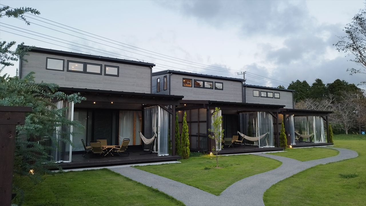 宿泊は、和郷グループが運営する「農園リゾートTHE FARM」の一画に最近できたばかりのコテージ「ハビタ」。ちなみにTHE FARMはプレスツアーや自腹で何度か泊りにきており、運営サイト「東京&関東グランピング情報館」にも訪問レポートを書いている。