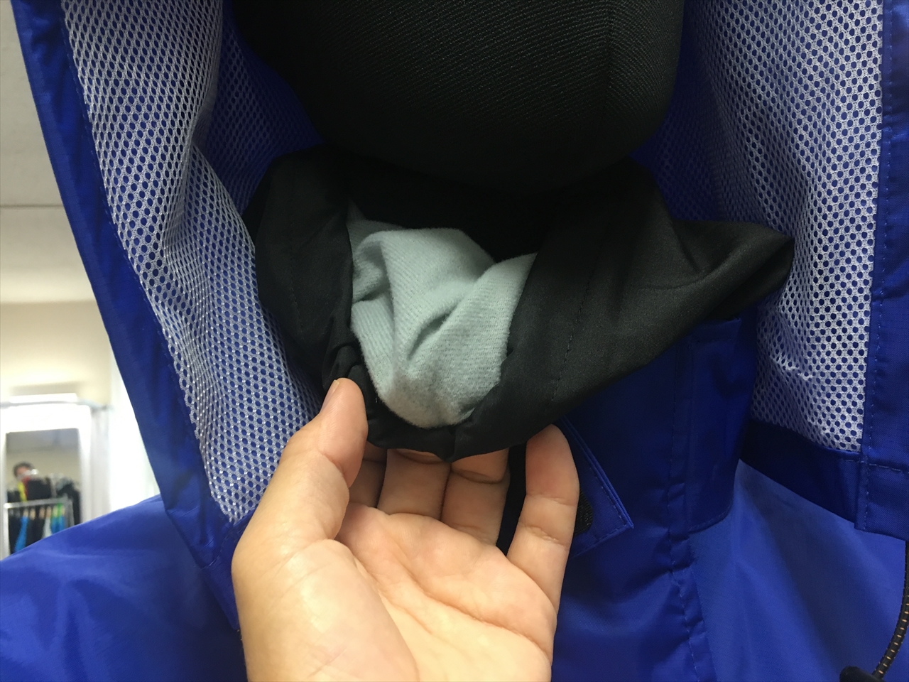 私は首筋が濡れるのが嫌なので、フードの上からヘルメットをかぶってしまうのだが、ジャマという人もいるだろう。