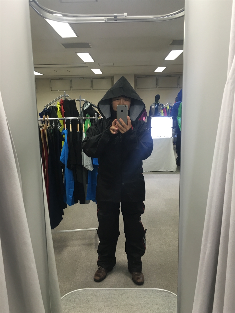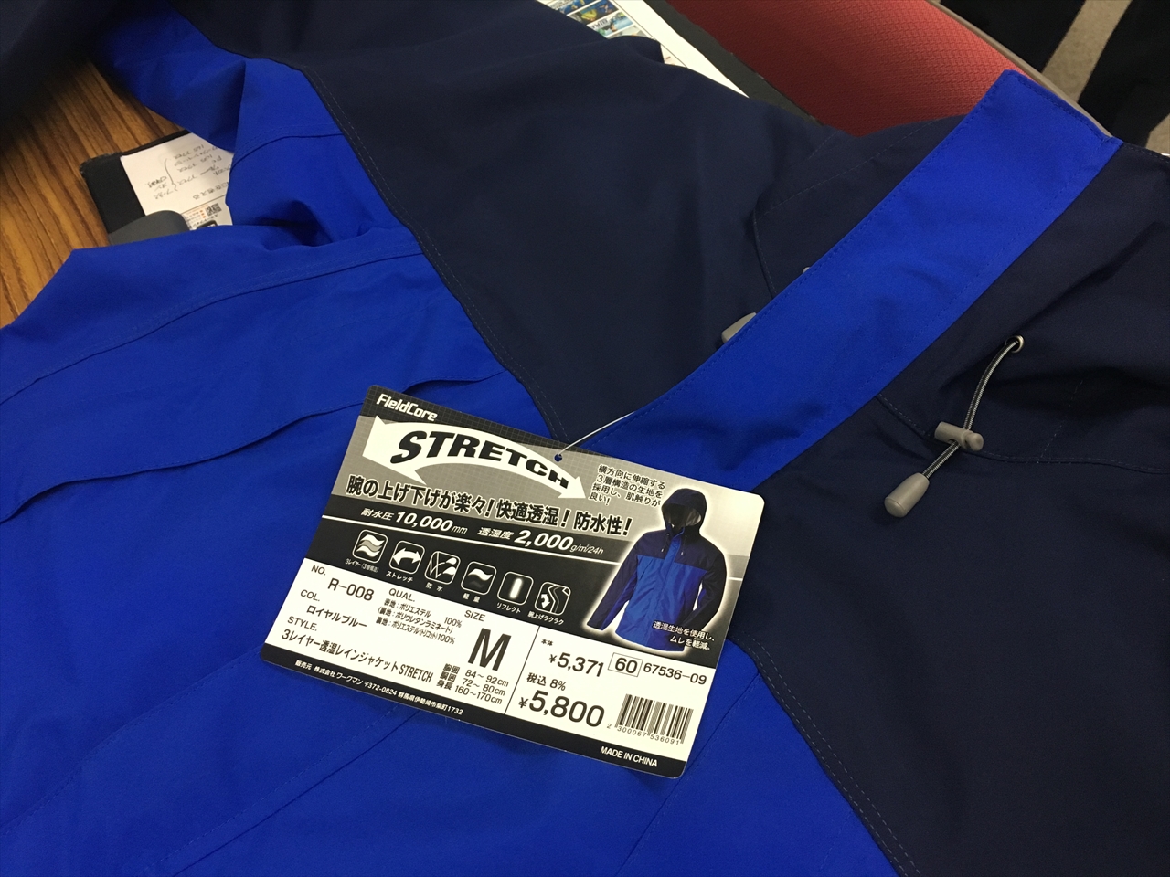 上下セットで5,800円という価格ゆえ、耐水圧は高いものの透湿性はなく「夏は暑かった」との本音。もしこれを透湿性も高い素材で作ろうと思ったらやはりそれなりのお値段になってしまうそう。