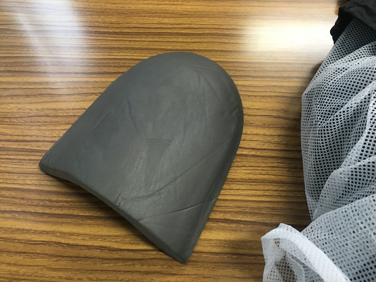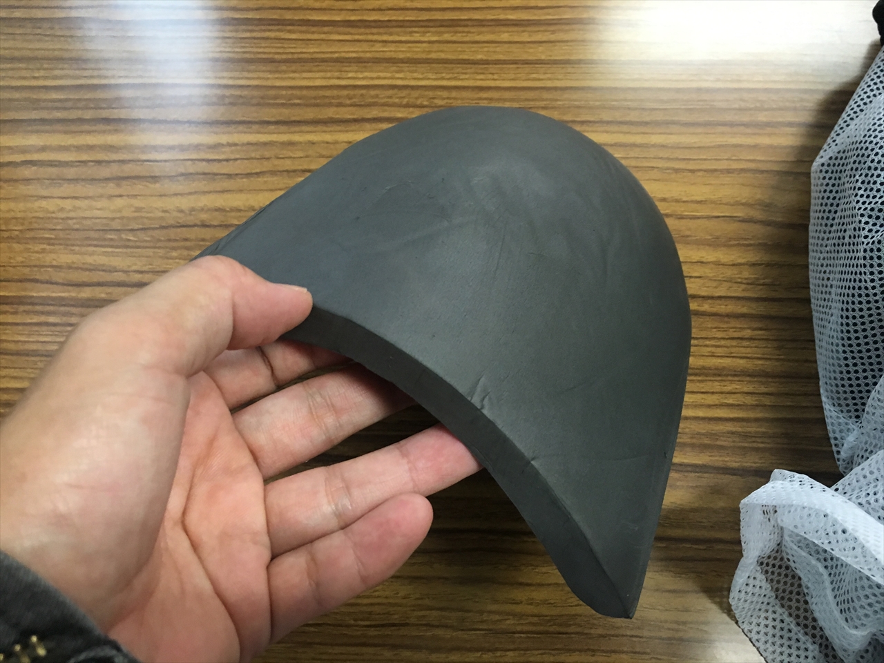 縁部分はほどよい堅さで、ぴんと張っているのが写真で見てもわかるだろう。走行中は特に関係ないかと思うが、それ以外の時はひさし状態になって顔にかかる雨を防いでくれるはず。
