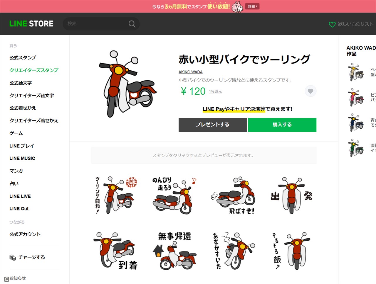 ちなみにこの時気付いたんだけど、夏に練習兼ねて作ったうさぎスタンプは、承認下りたもののリリースし忘れ公開前だった。なのでこの赤い小型バイクLINEスタンプが、私にとっては第一号LINEスタンプだ。