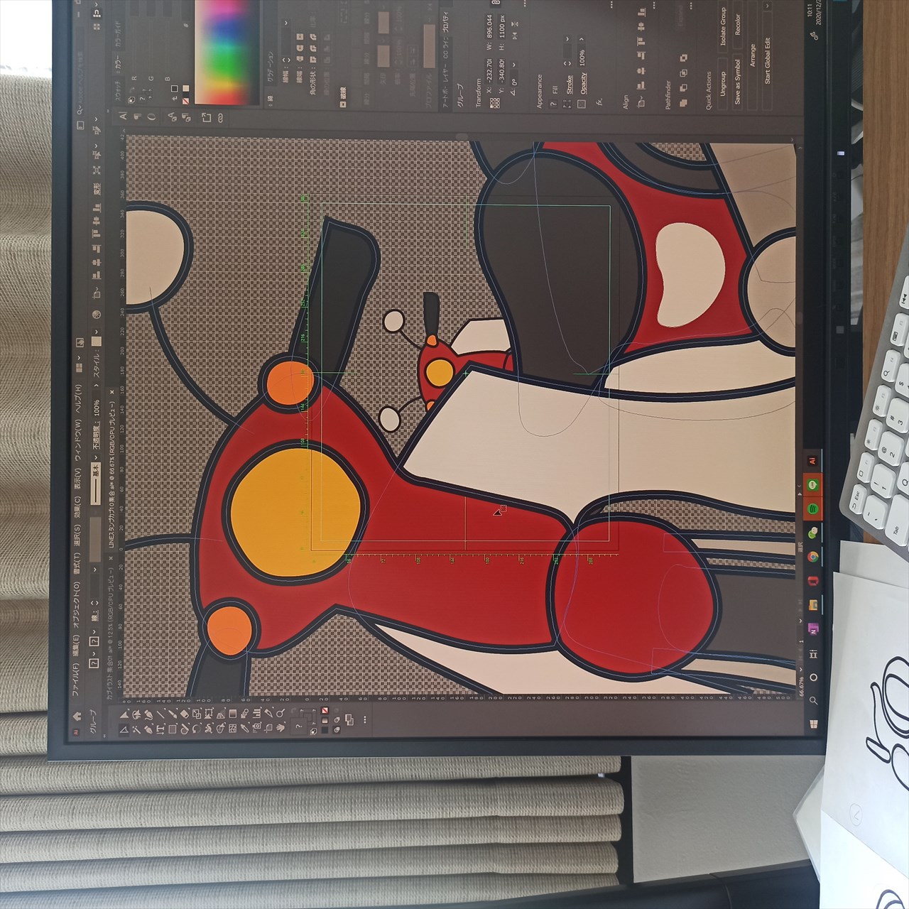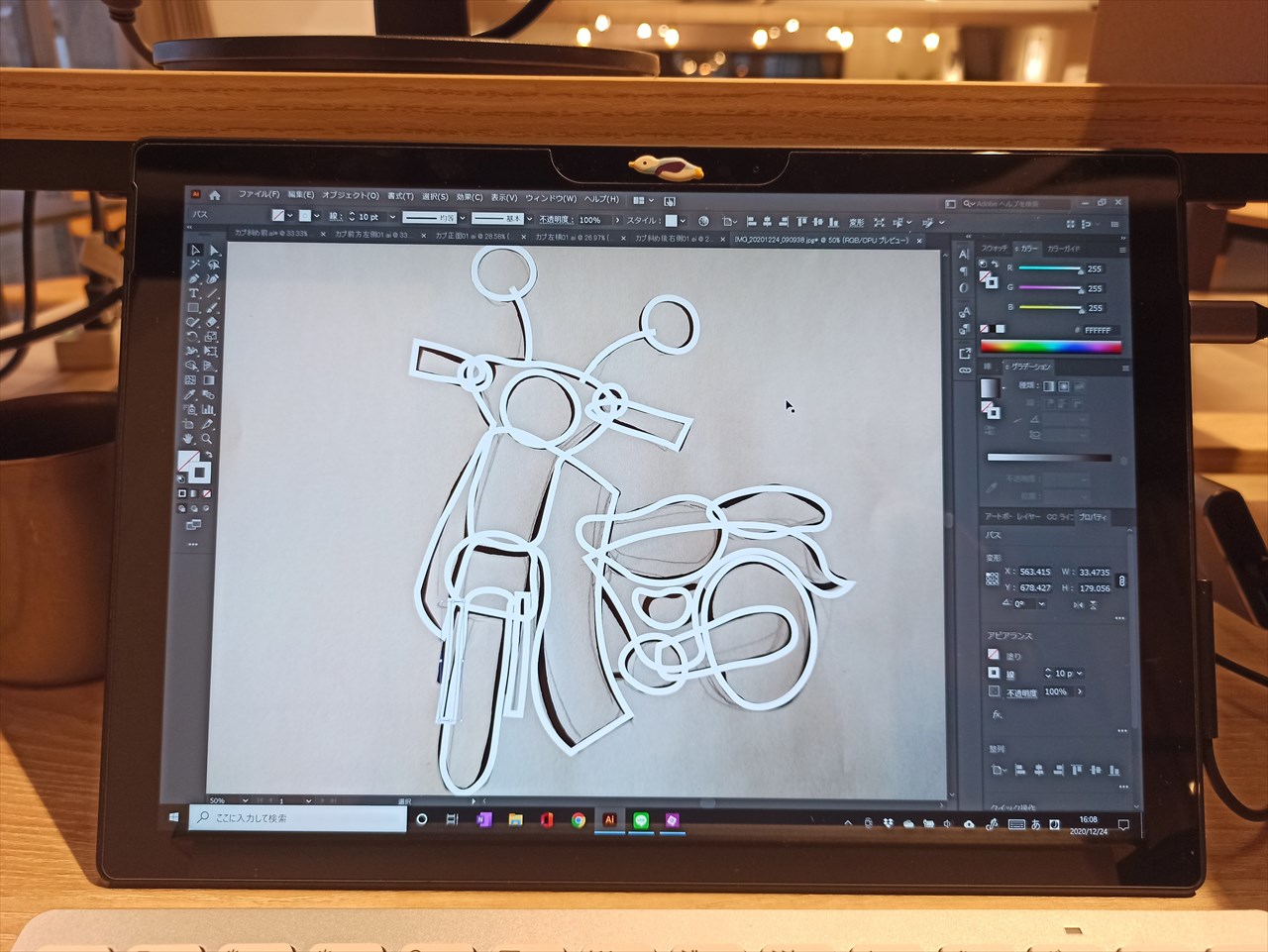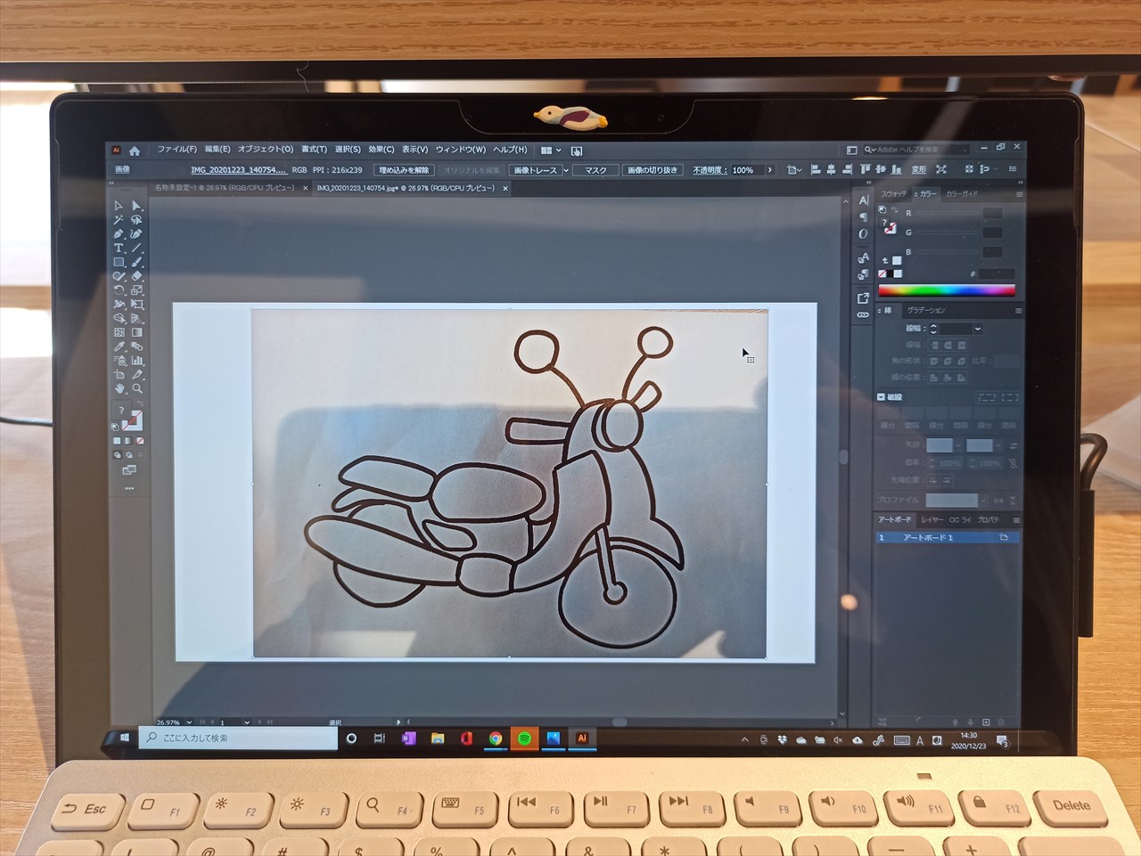 それをスマホで撮影してパソコンに送り、イラストレーターで読み込む。