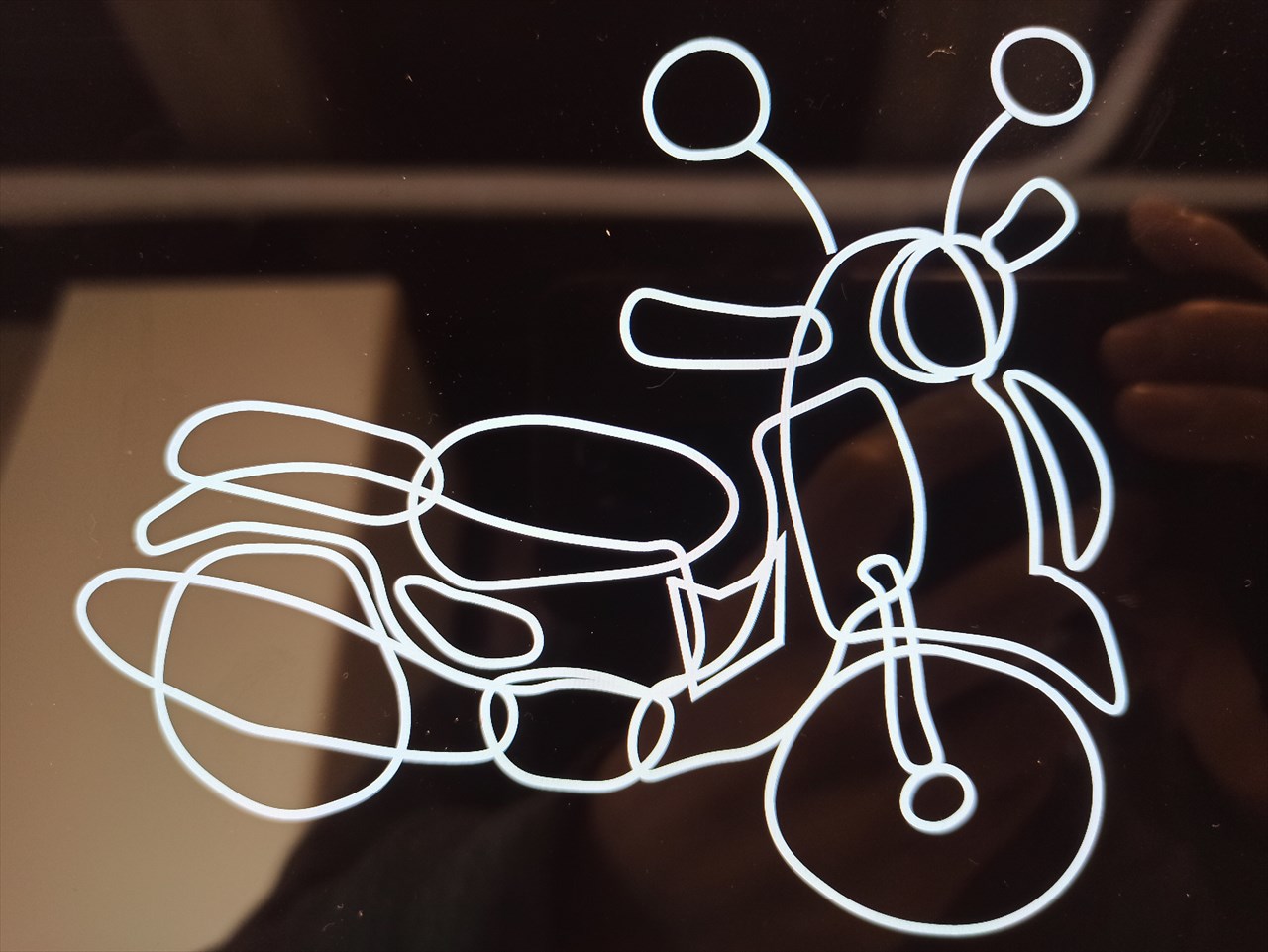 後で色塗りする関係もあり、ラインだけでなく各パーツごとに閉じた図にする。タイヤやバックミラーは円作成機能を使ってもいいんだけど、手描きのほうが味わいあるかなと思い、あえて歪みを残した。