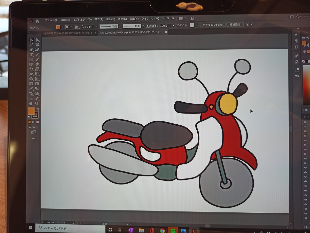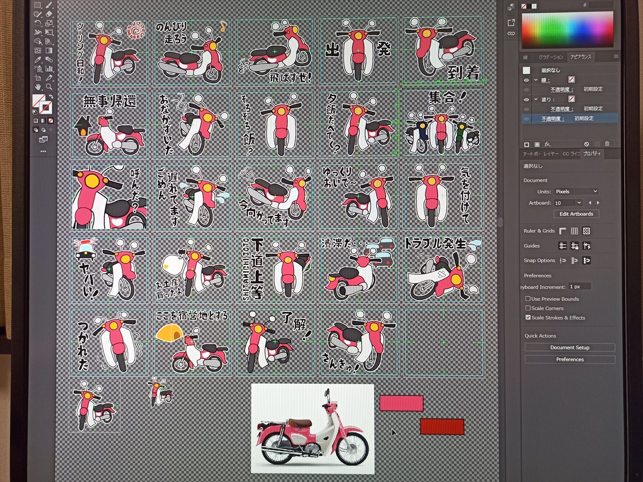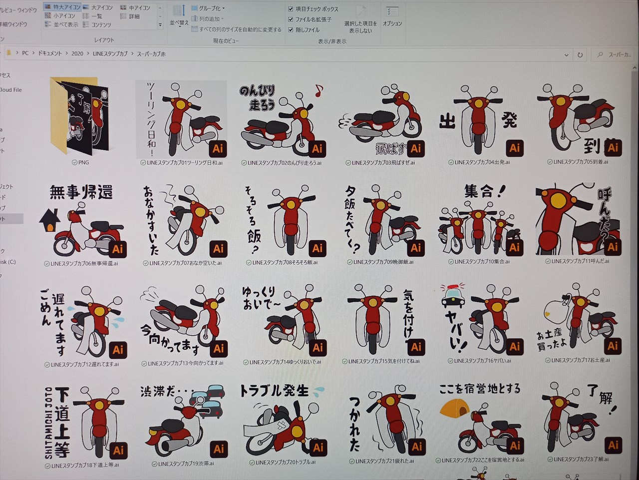 去年「1か月チャレンジ」でイラストレーターが使えるようになり、その後簡単なLINEスタンプを作成。「次は赤クロスカブをイラストにして、ツーリング用のLINEスタンプを作ろう」と思ってTO DO LISTに入れていたのに、つい後回しにしていたのを、一年の最後の最後に着手。