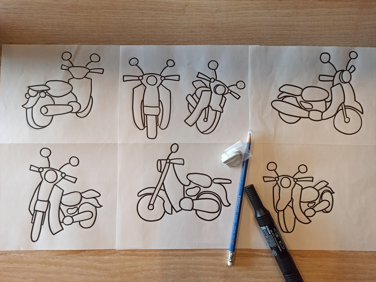 鉛筆で下書きしたものを、別の紙に一度書き写しペンでなぞって清書。