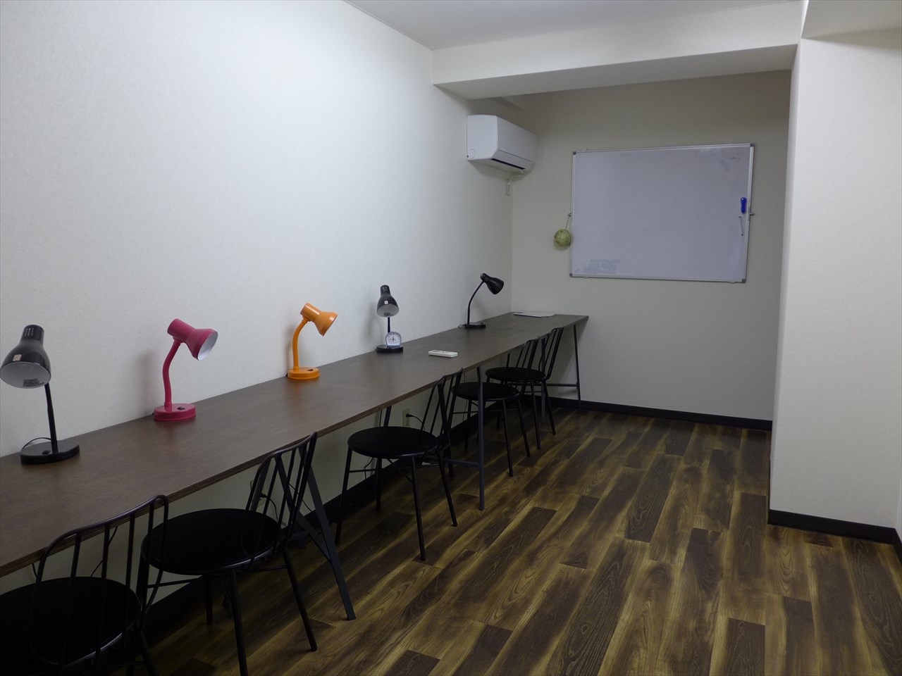 スタディルームは細長い部屋に長テーブルと椅子がずらり。ミニセミナーなども開催できそう。