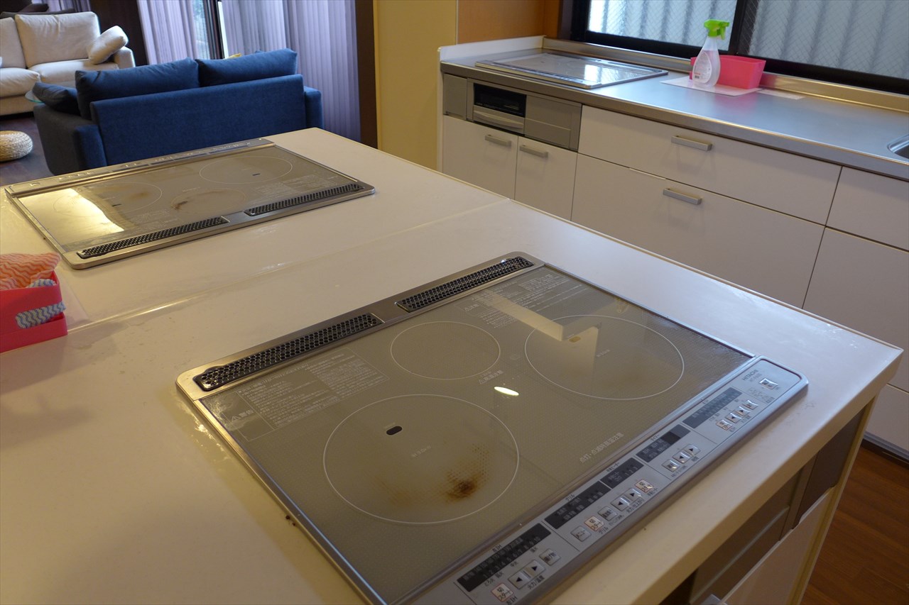シンクと各3箇所使える電磁調理器のセットが4セット。そんなことする人はいないが、全部で同時に12個の鍋・フライパンで調理できる。