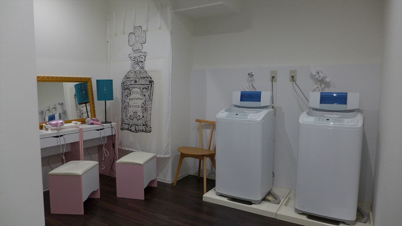 女性専用シャワールームには2台の洗濯機にドレッサーもあった。