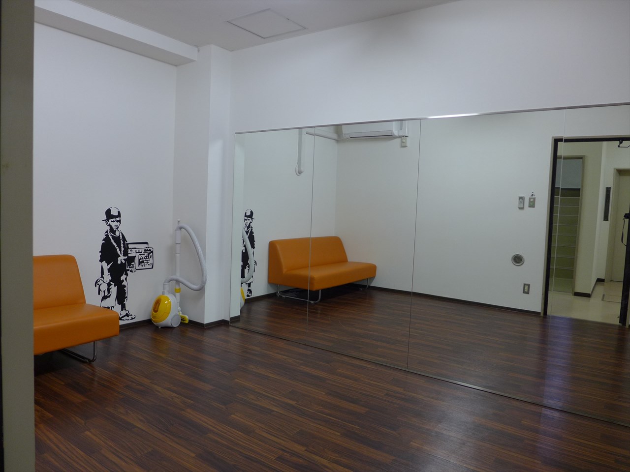 それほど広くはないが、5~6人でストレッチしたりヨガしたりするには十分。ちょっときつくてもよければもっと入るだろう。