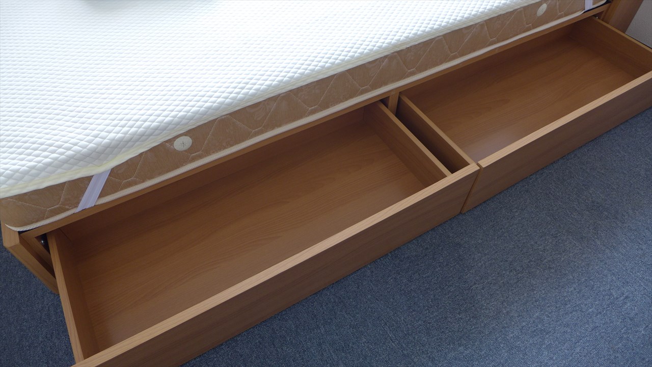 あとベッドの下も引き出し式の収納スペースになっている。