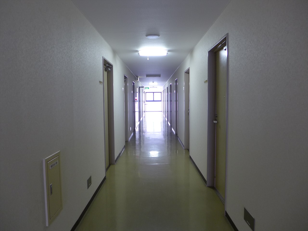 廊下両側にシングルルームがずらり。