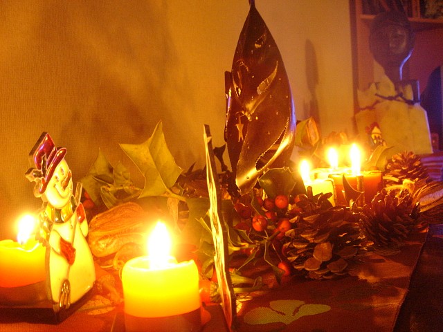 拾ってきた松ぼっくりや木の枝などで、こんなキャンドルコーナーができていた。