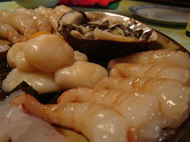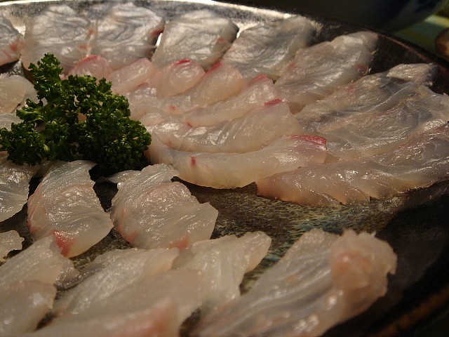 吉兆クラスというウン万円の素材を使った、鯛と平目のお刺身。