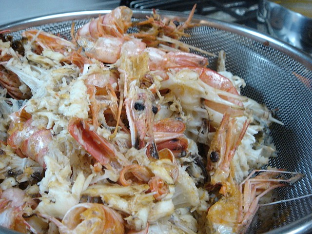 こちらはお料理ではなく、海鮮だしをとった後。