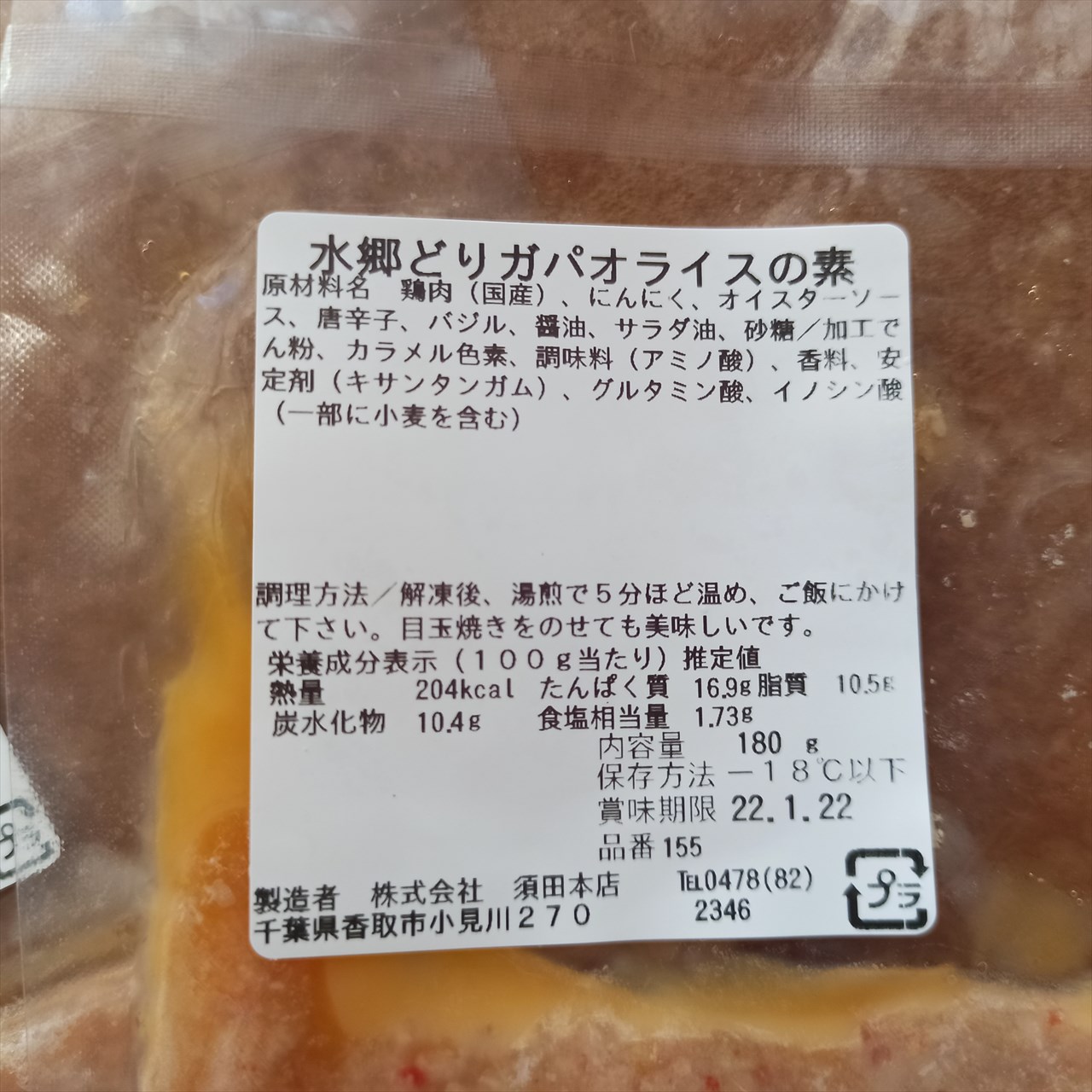 1人前180gが密封パックで冷凍されている。