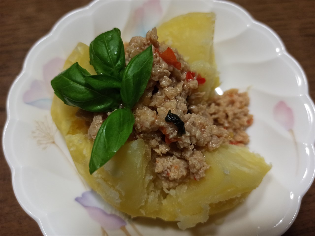 ほくほくの甘いじゃがいもの上にトッピング。