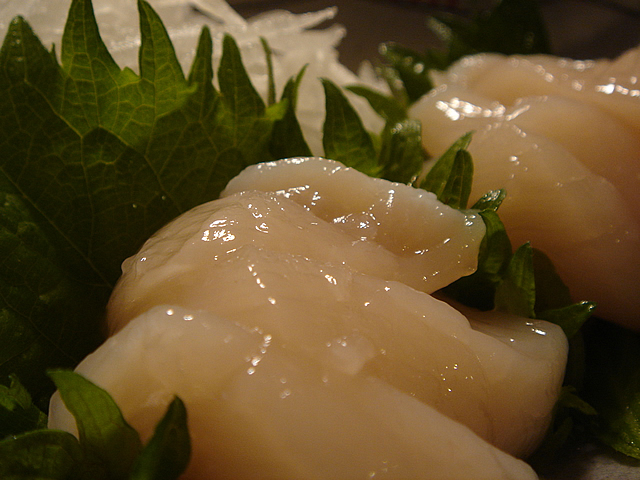 濃厚なホタテに、ほんのちょっとのわさびとほんのちょっとの醤油。泡盛飲みながらいただきました。