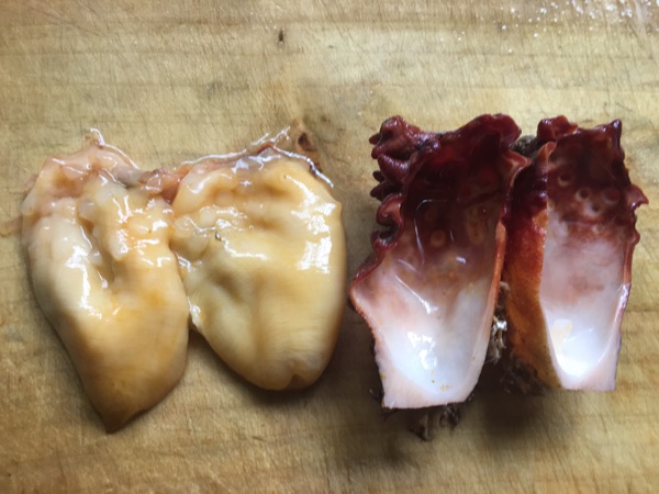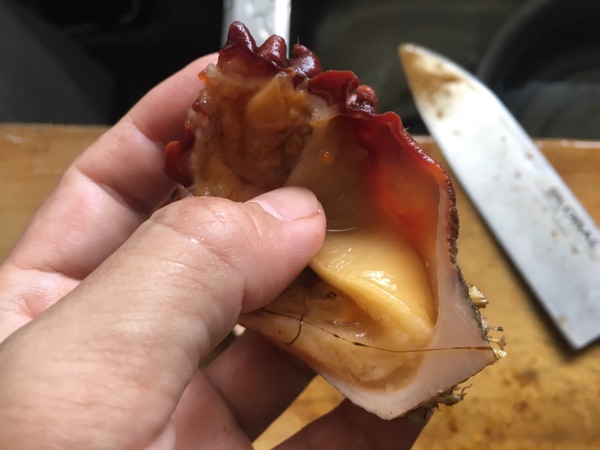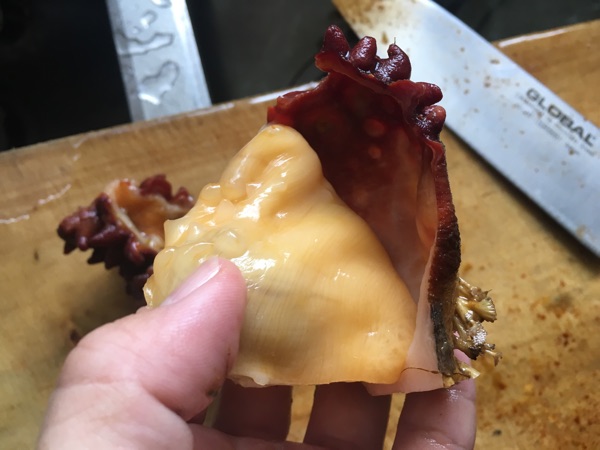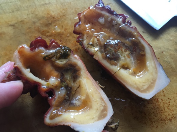 シャツを洗いに行ったハプニング時間を除けば、3分ほどでこの状況に。ホヤの解体、もっと大変かと思っていたよ。