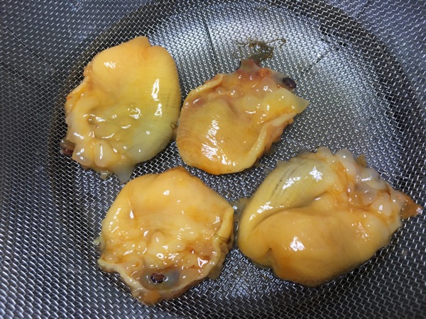 柔らかい、ジューシー、塩味が絶妙、そして帆立のような甘さも。少しワタ残しているので軽い苦味もあるけど、そこがまたなんとも。醤油もなにもつけず、このままが美味。