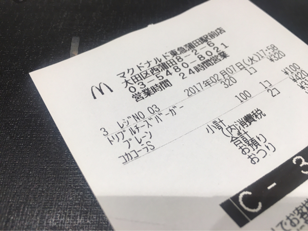 レシートにも「プレーン」の文字。