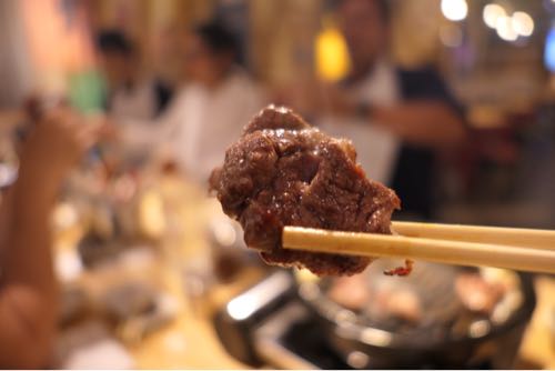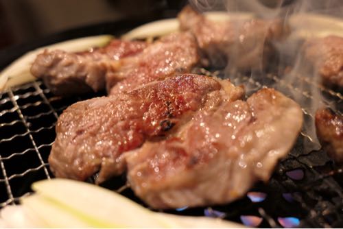 これは店長自ら、ベストな焼き方を教えてくれた。無数のカメラに囲まれる肉。