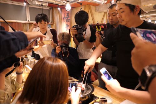 店長とラムチョップを囲むカメラ・カメラ・カメラ。
