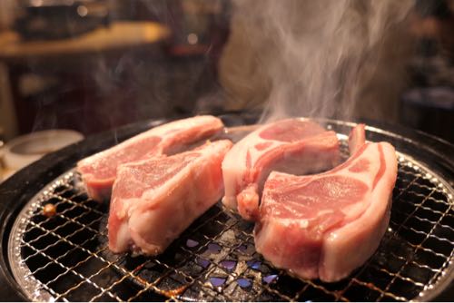 肉の表面にフツフツと浮かび上がる脂。こんがり焦げた角が美味しそう。