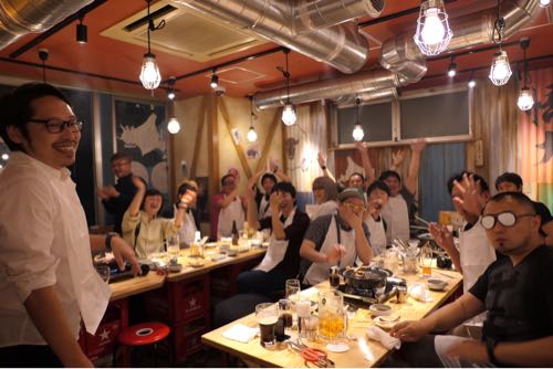 この日のイベント企画者、ゆうせいさんが乾杯の音頭。総勢17名が集った。