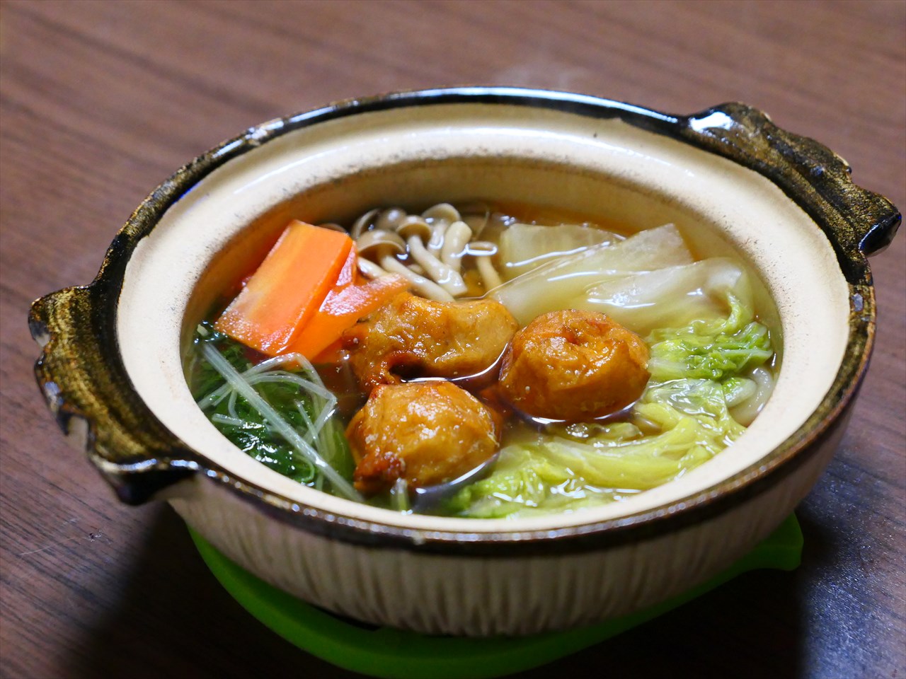 具材は白菜にネギ、人参、豆腐、しめじ。
