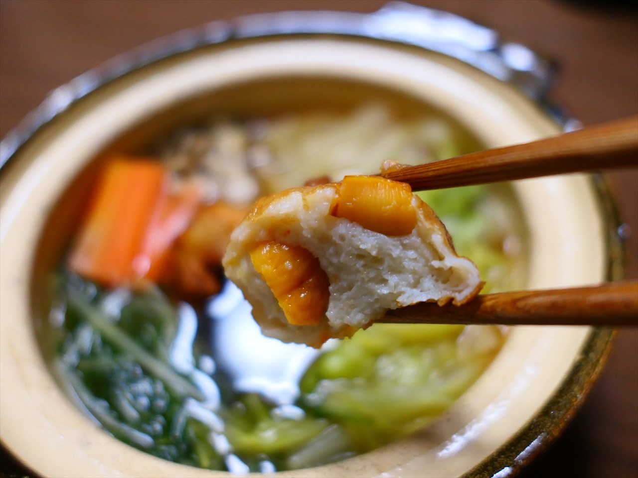 そして今朝、もう一種類の揚げた「ほやだんご(仮)」を使って、ひとり鍋を作って食べた。