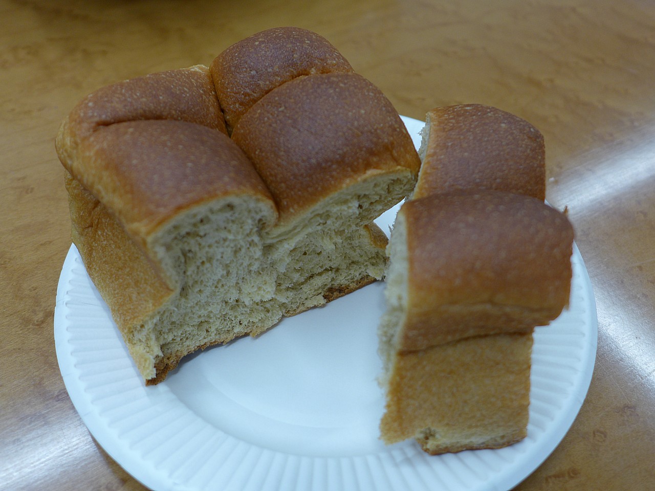 このままかじるには大きすぎるんだけど、両手で持って引っ張れば、溝がついたところから自然にふわっと割れるようになっている。