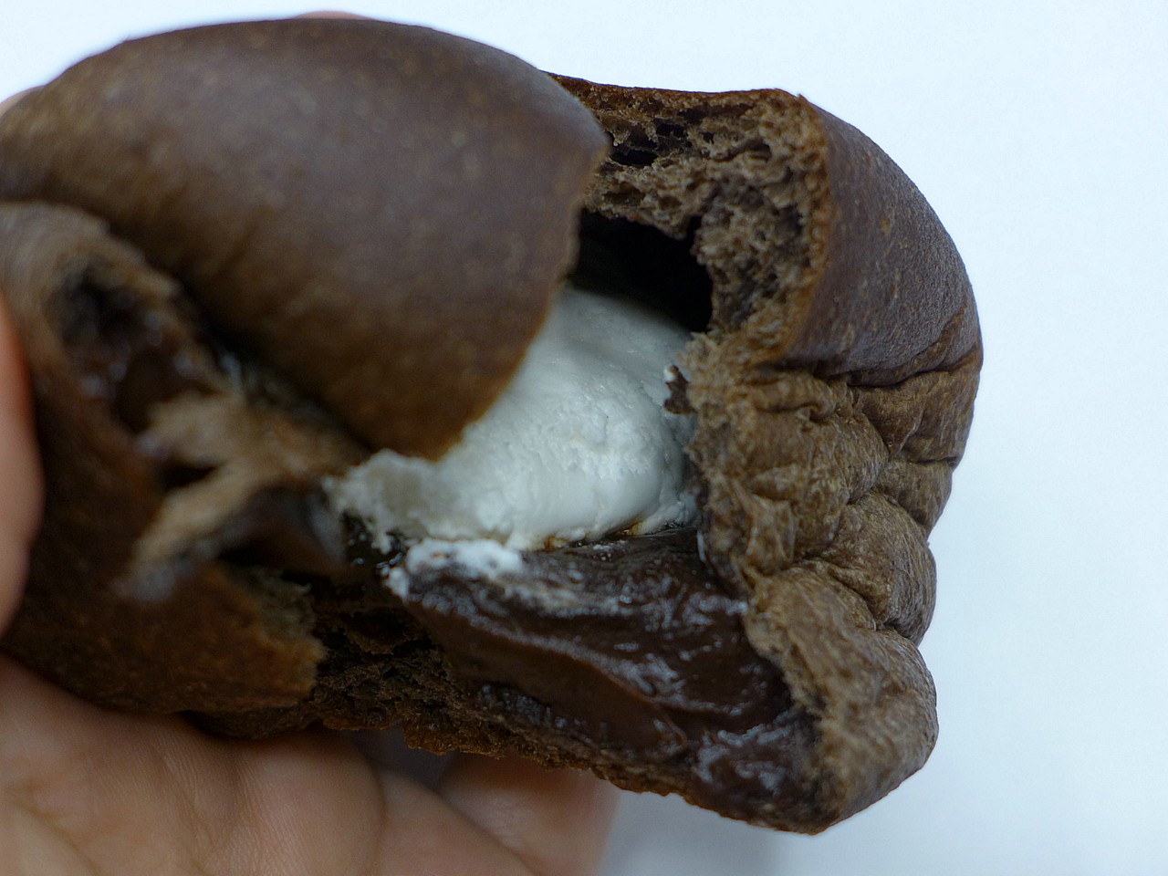 たっぷりのホイップクリームに、これまた流れ出んばかりのチョコクリームの二層仕立て。