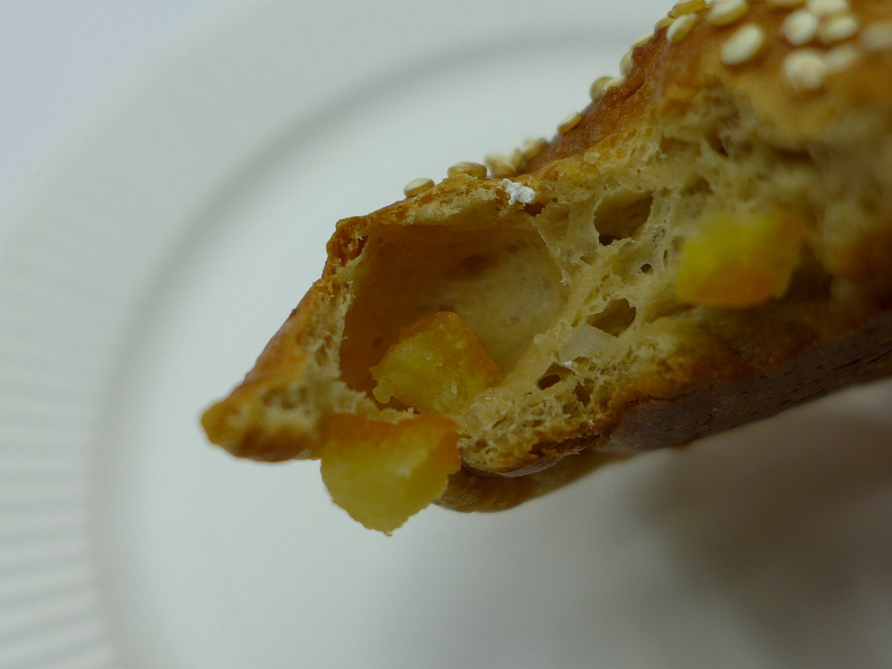カレーパンも、油で揚げる分だけどうしてもカロリー高くなってしまうものだが、これはノンフライ。