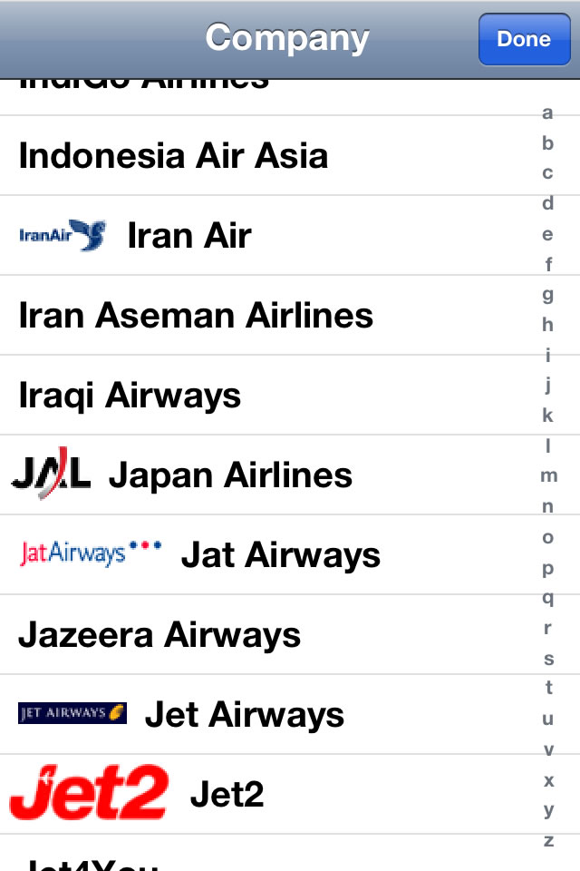 数が半端なく多いので、右端に「a」から「z」まである目次をタップして近くまでジャンプしてしまったほうが早いだろう。