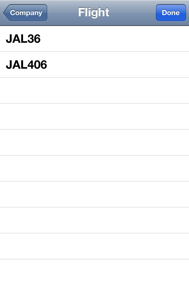 そうするとその時飛んでいてデータがとれている飛行機の便名が表示される。この操作したのは早朝4時なので国内便は飛んでいないせいか数が少なかった。