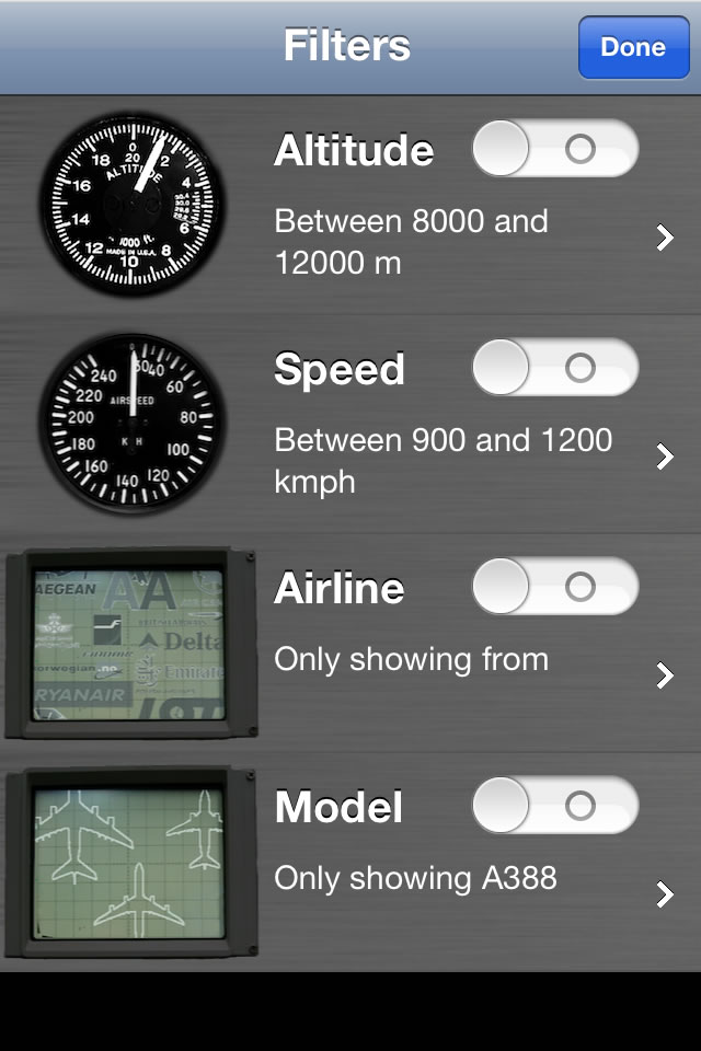 飛行機の高度(Altitude)や速度(Speed)、航空会社(Airline)、機体モデル(Model)で絞り込める。そっか、JAL便だけで絞り込めば探すのも楽だったのか。