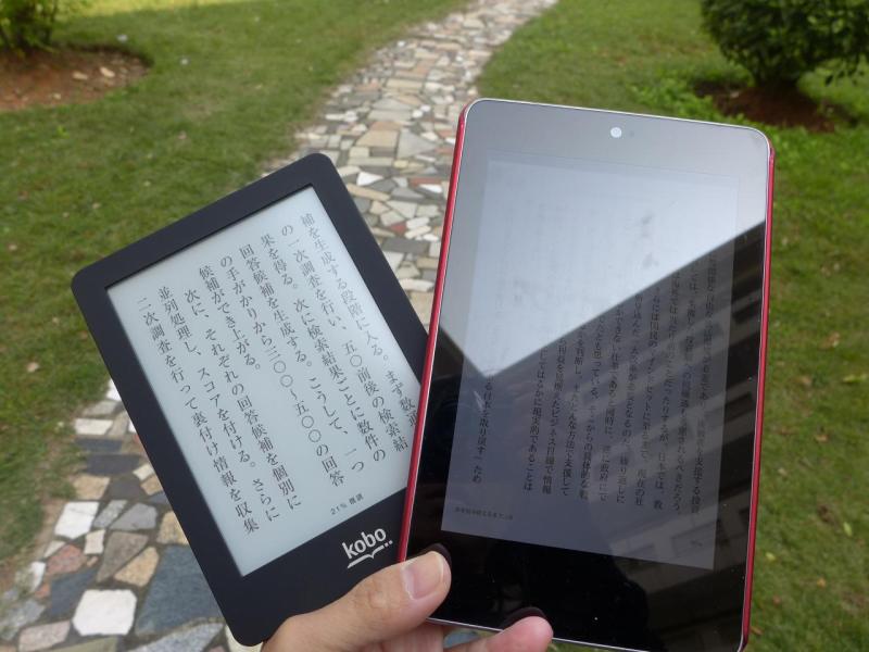 違いがさらにわかるのは屋外で読む時。