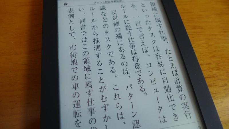 これまでずっと電子書籍はタブレットPC(Nexus 7)で読んでいたので、専用の電子書籍リーダーの「まるで紙の本」な画面にかなりびっくり。